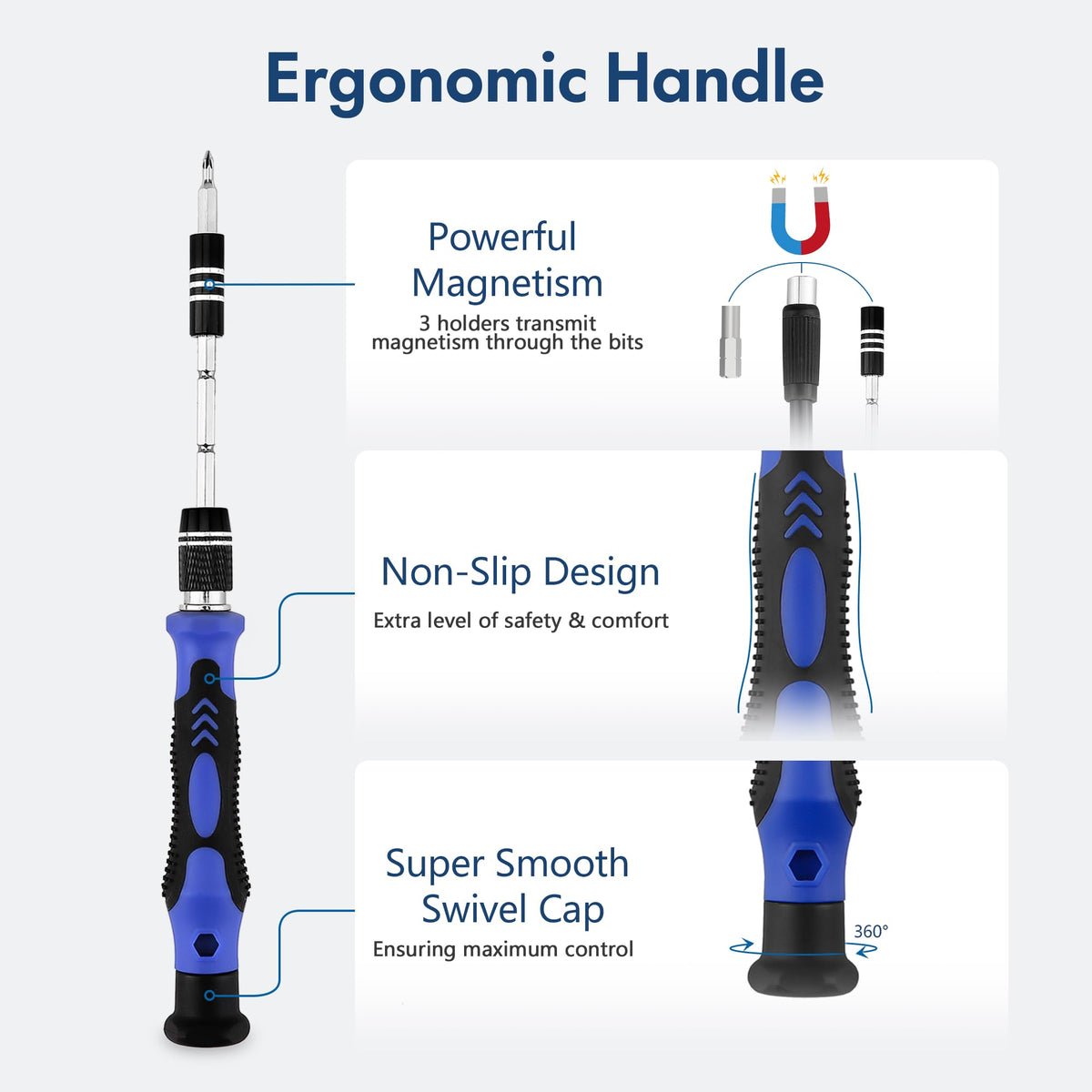 Xool 62 In 1 Precision Screwdriver Kit, Electronics Repair Tool Kit, Magnetic Driver Kit With Flexible Shaft, Extension Rod For