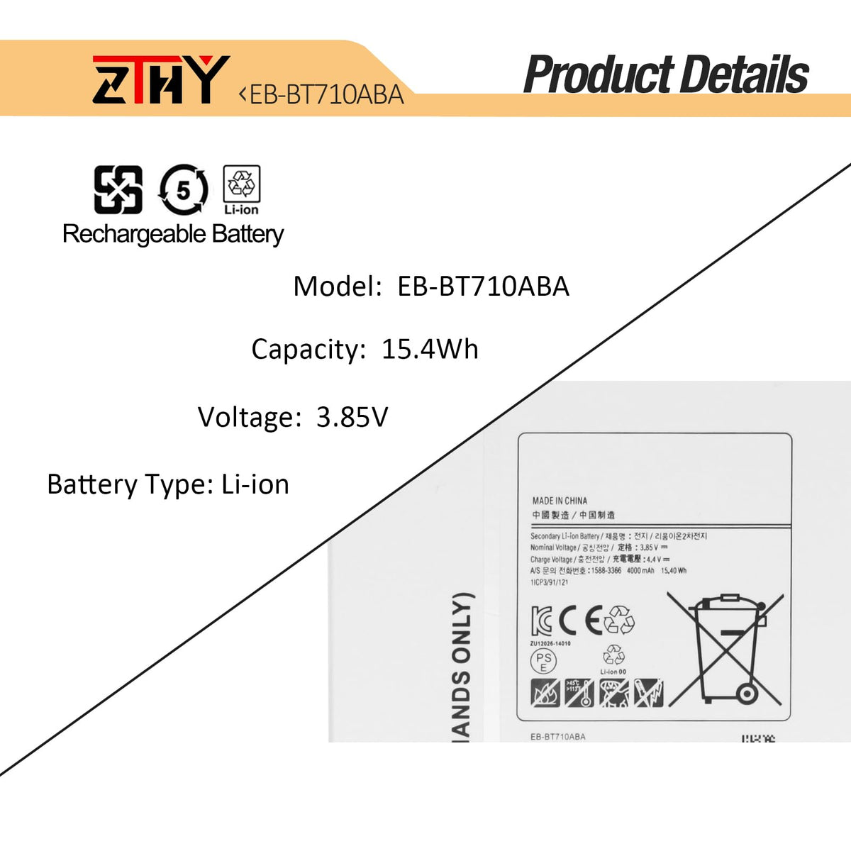 Q: How long does the ZTHY battery last after a single charge?A: The ZTHY EB-BT710ABE battery has a capacity of 4000mAh, providing reliable power to your device and lasting up to a full day depending on usage. It supports up to 500 recharge cycles over its lifespan.