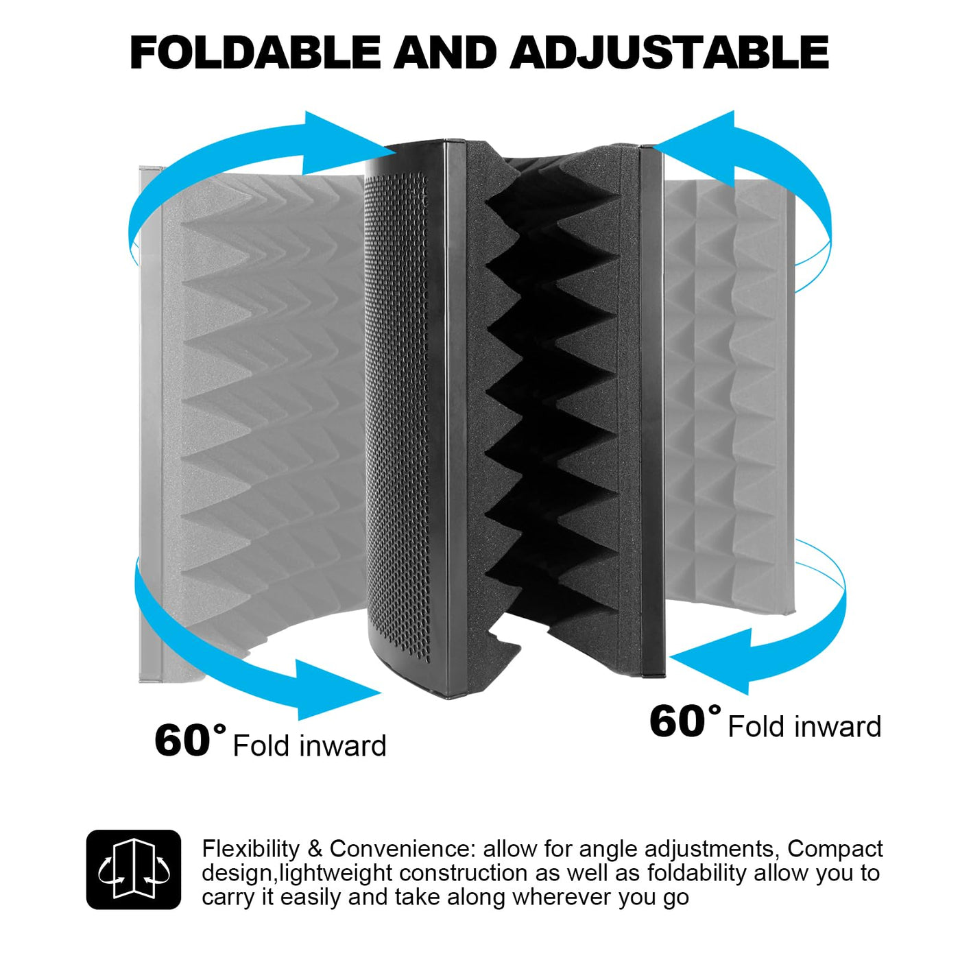 Aokeo Microphone Isolation Shield Features Absorbing Cotton Insulation To Reduce Sound Reflection, And To Help You Achieve A More Crisp And Clean Sound When Recording. The Three Panel Design Features Two Fold-Able End Panels To Allow For Angle Adjustments. It Can Be Fixed On Counter Top Or Tabletop, And Also Can Be Mounted To A Microphone Stand. Note: We Do Not Recommend Any Other Stands Other Than Aokeo Branded Stands, But We Included An Adapter In Box For You Just In Case. We Guarantee 100% That It Will Fit Any Aokeo Branded Stands Only. Warm Tip: This Product Offers A 12-Month Repair/Replacement Warranty And A 30-Day Hassle-Free Return Policy. Aokeo Electronic Technology Limited Company Provides You With 100% Quality Assurance. If You Have Any Questions After Receiving This Product, Please Contact Us In Time, We Will Help You Solve It As Soon As Possible.