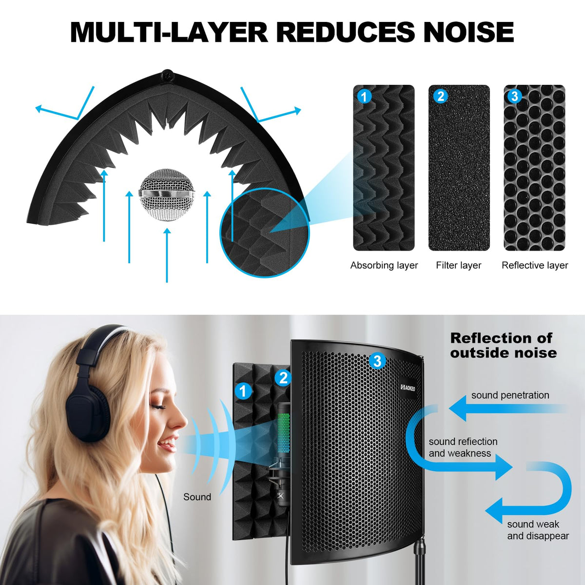 Aokeo Professional Studio Recording Microphone Isolation Shield,Suitable For Blue Yeti And Any Condenser Microphone Recording Eq