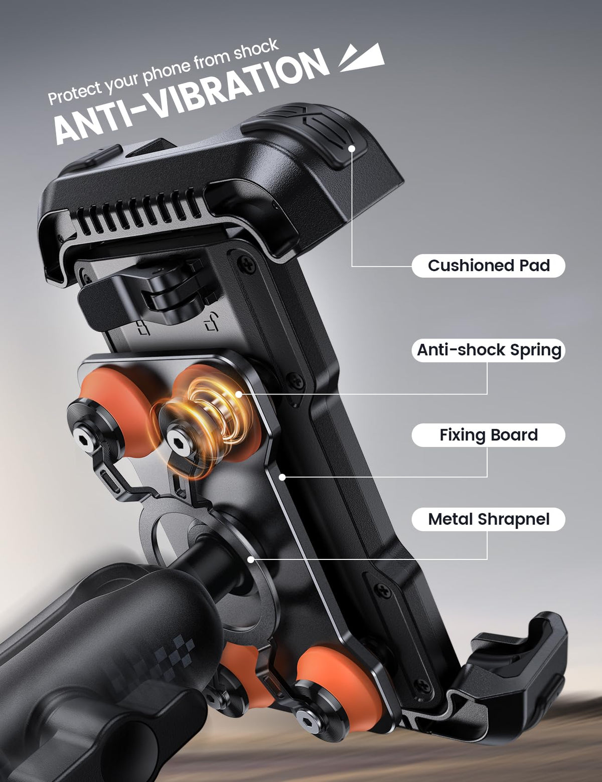 ?Metal Extended Arm & Anti-Theft Design?Aomiker Motorcycle Phone Mount Equipped With A Unique Metal Extension Arm. Combined With 360