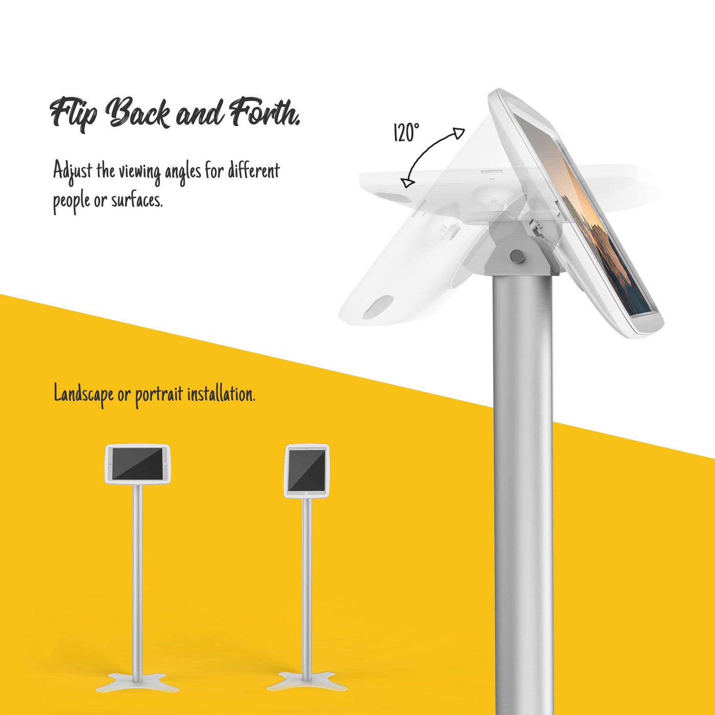 Beelta Tablet Kiosk Floor Stand Adjustable Compatible With 10.2'' Ipad 7 8 9Th, 120 Degree Rotate Lockable Tablet Enclosure+Alum