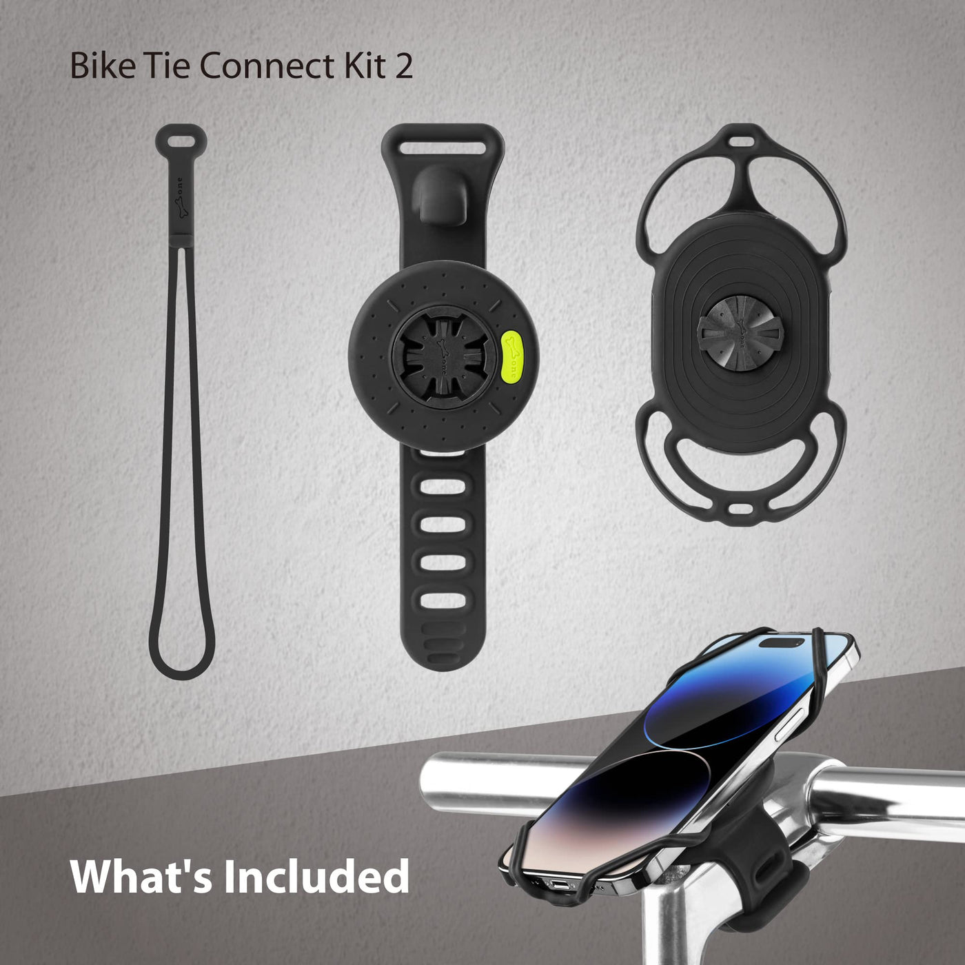 Bone Bike Tie Connect Kit 2, Bike Cell Phone Mount For Stem, Detachable & 360 Rotatable Silicone Holder With Shock-Absorbing Des