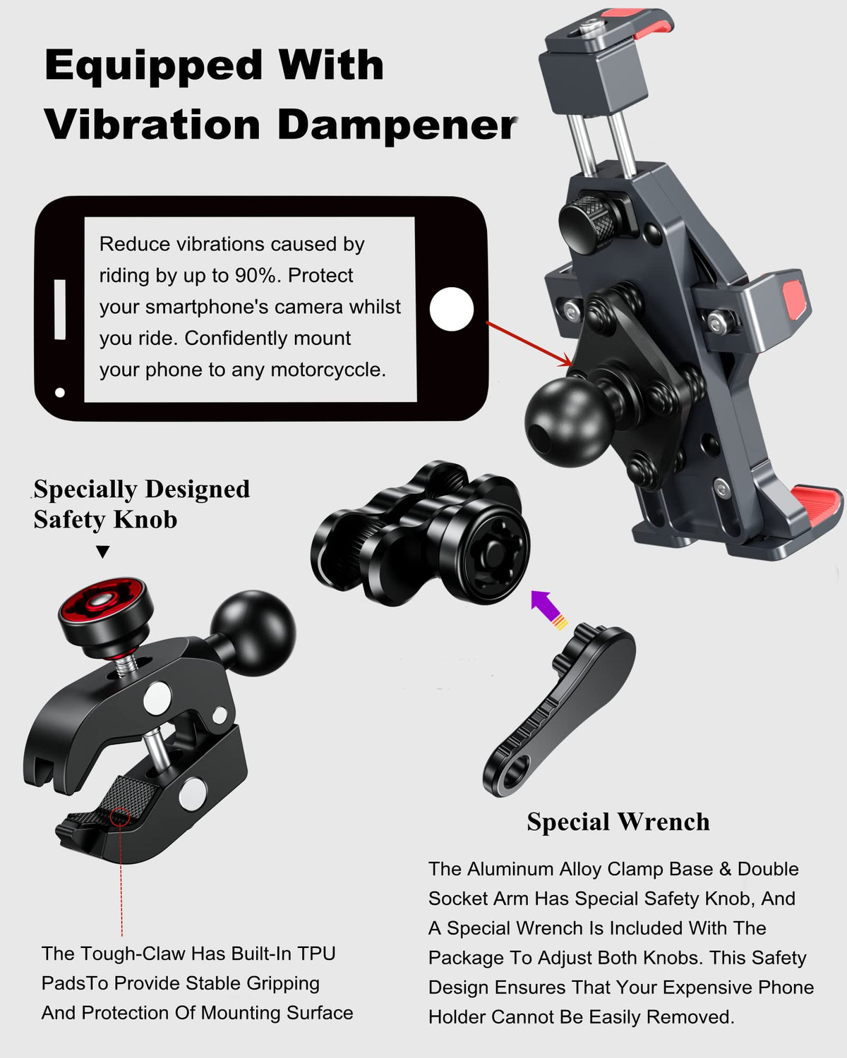 Brcovan Aluminum Alloy Motorcycle Phone Holder With Vibration Dampener & High Speed Secure Lock, Metal Anti Theft Adjustable Mot