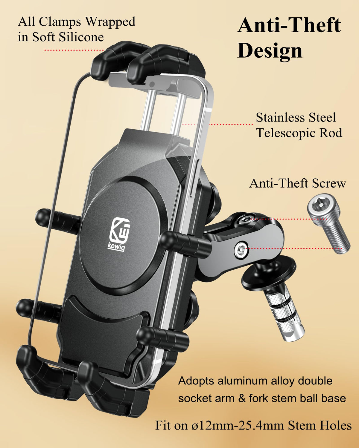 Brcovan Motorcycle Fork Stem Phone Mount With Vibration Dampener & High Speed Secure Lock, Anti Theft Motorcycle Phone Holder Ce