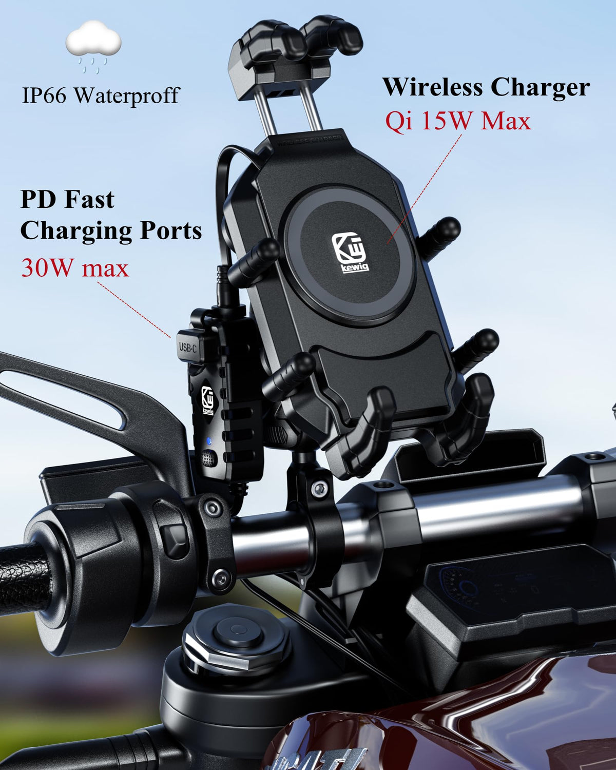 Brcovan Motorcycle Phone Mount With Qi 15W Wireless Charger & 30W Pd/Usb C Fast Charging Port, Anti Theft Motorcycle Handlebar C