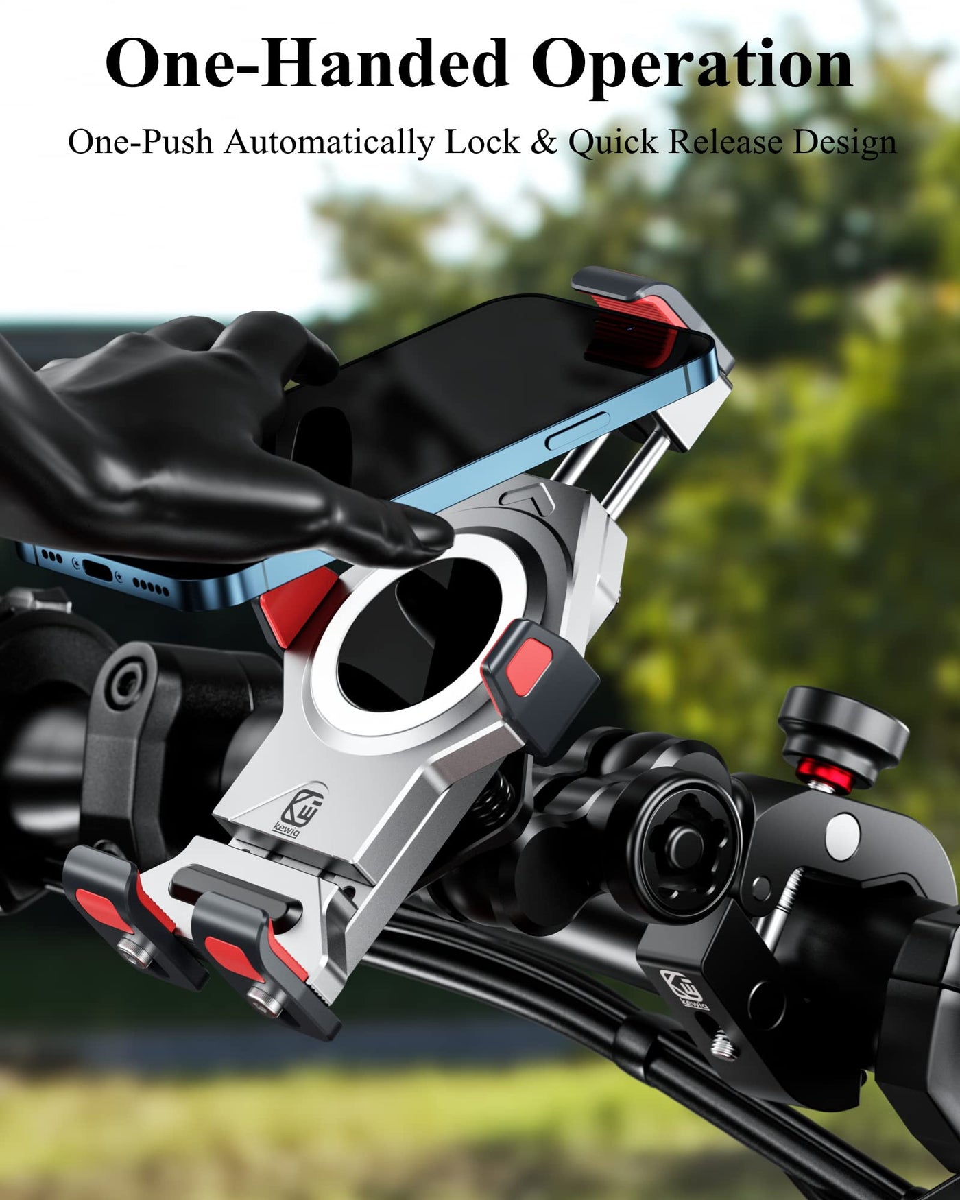 Brcovan Motorcycle Phone Mount With Vibration Dampener, Anti Theft, Adjustable, Aluminum Alloy Handlebar Cell Phone Holder For M