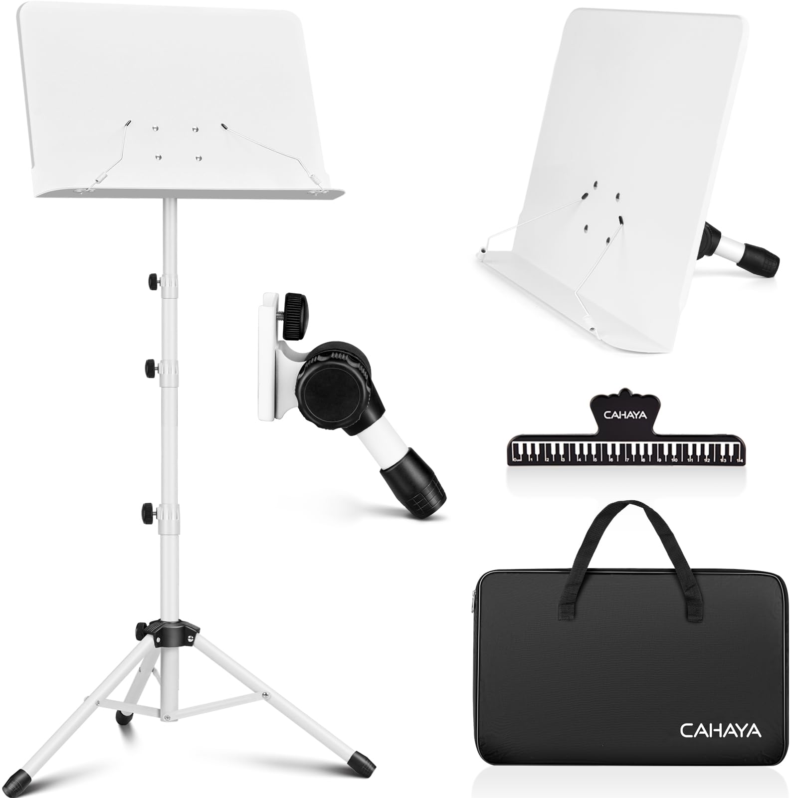 Cahaya 4 In 1 Heightened Dual-Use Sheet Music Stand & Desktop Book Stand Metal Portable Solid Back With Height Adjustable From 314-67In Including Carrying Bag, Sheet Music Folder & Clip Cy0304-2