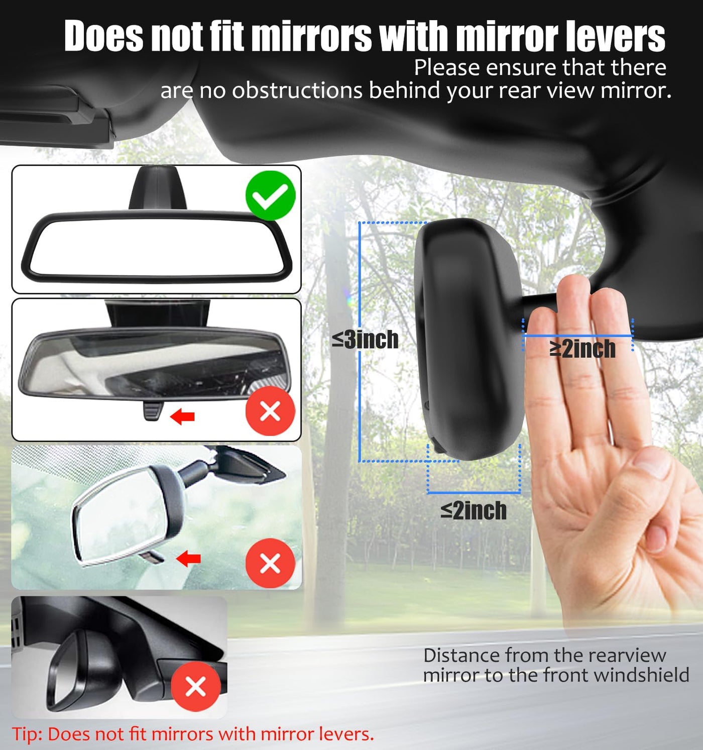 Tip: Does Not Fit Mirrors With Mirror Levers. Not Suitable For Rearview Mirror With Driving Recorder On The Back. The Car Tablet/Phone Holder Mount Adopt Retractable Big Three-Claw Design, Suitable For Car Rearview Mirrors With A Thickness Of 1.08~2.36''. Two Telescopic Claws Are Suitable For Car Mirrors With A Height Of 1.96-3.07''. Easy To Install By Yourself Without Any Tools, Fast Locking, Saving Time And Effort.