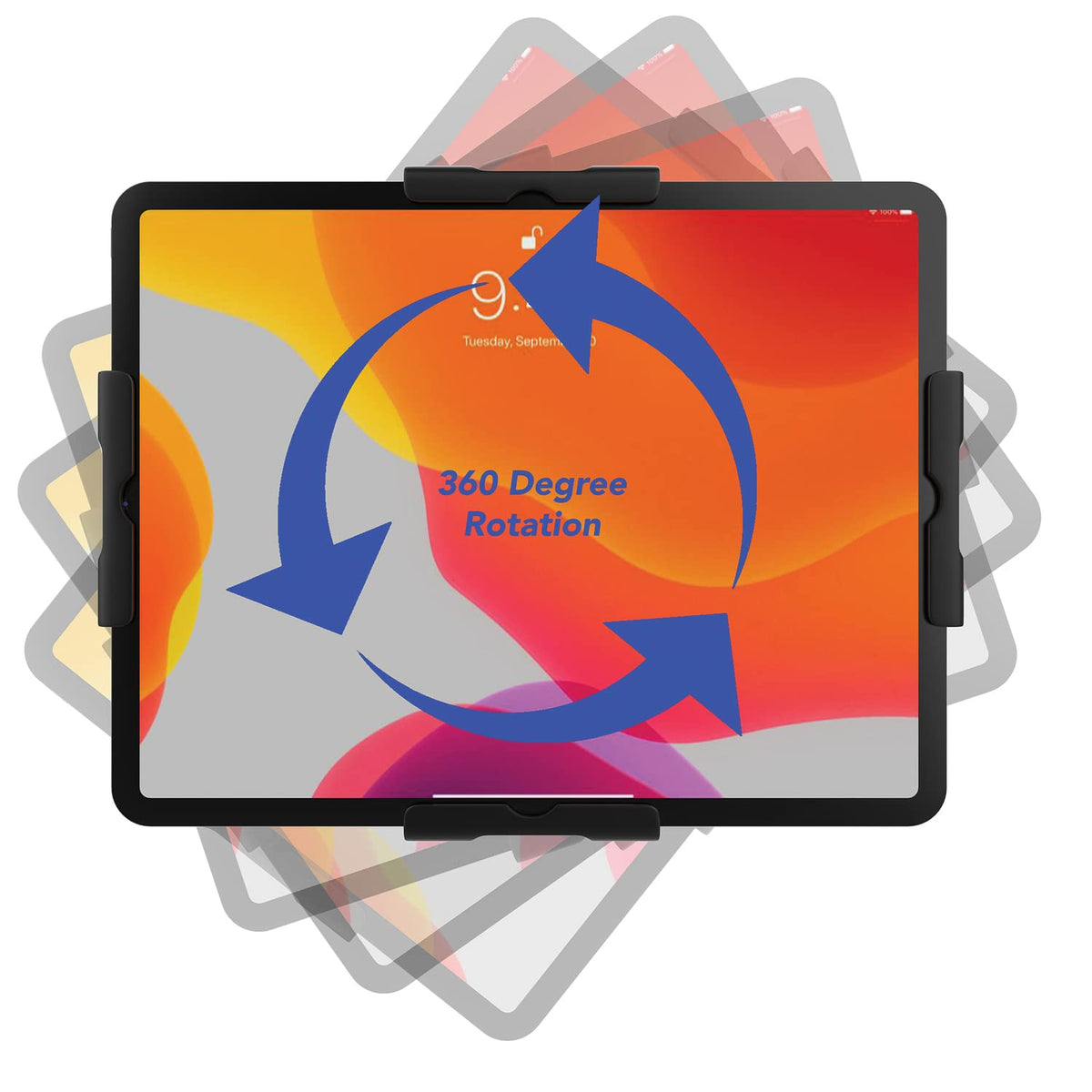 Q: Can the tablet holder rotate for different viewing angles?A: Yes, the CTA Digital Universal Security Tablet Holder features a 360° rotation, allowing you to easily switch between portrait and landscape orientations for optimal viewing angles.