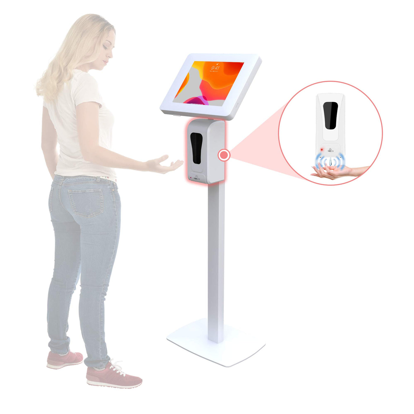 Premium Thin Profile Floor Stand With Security Enclosure And Automatic Soap Dispenser (White)