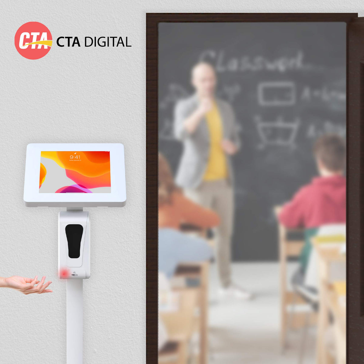 Cta Digital: Premium Thin Profile Floor Stand With Security Enclosure And Automatic Soap Dispenser For 9.7'' To 11'' Tablet, Whi
