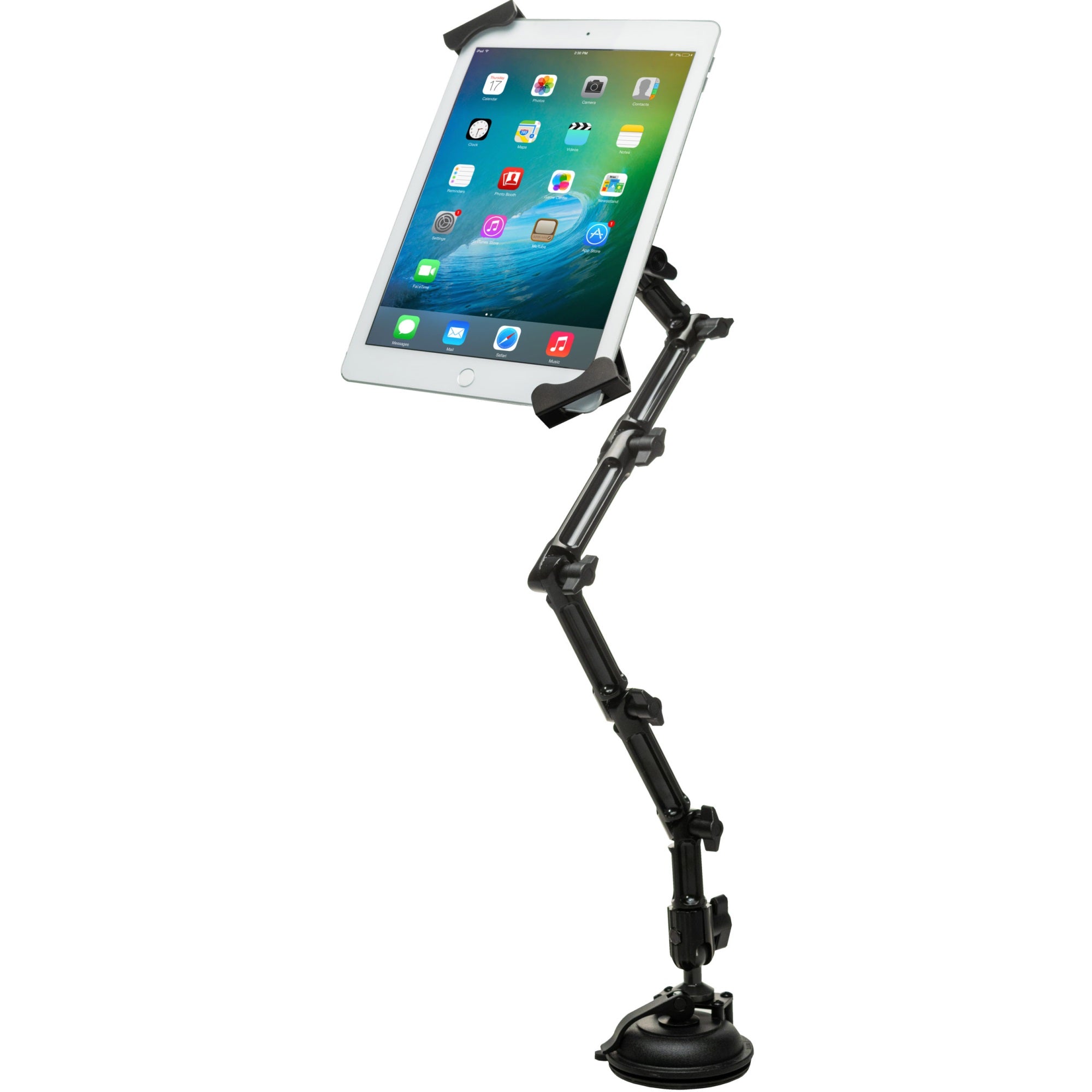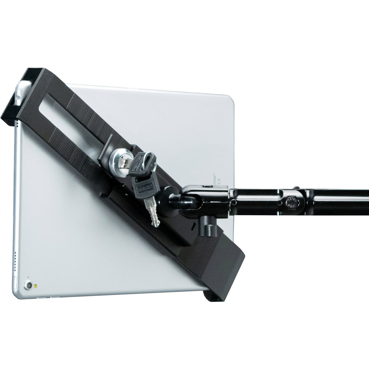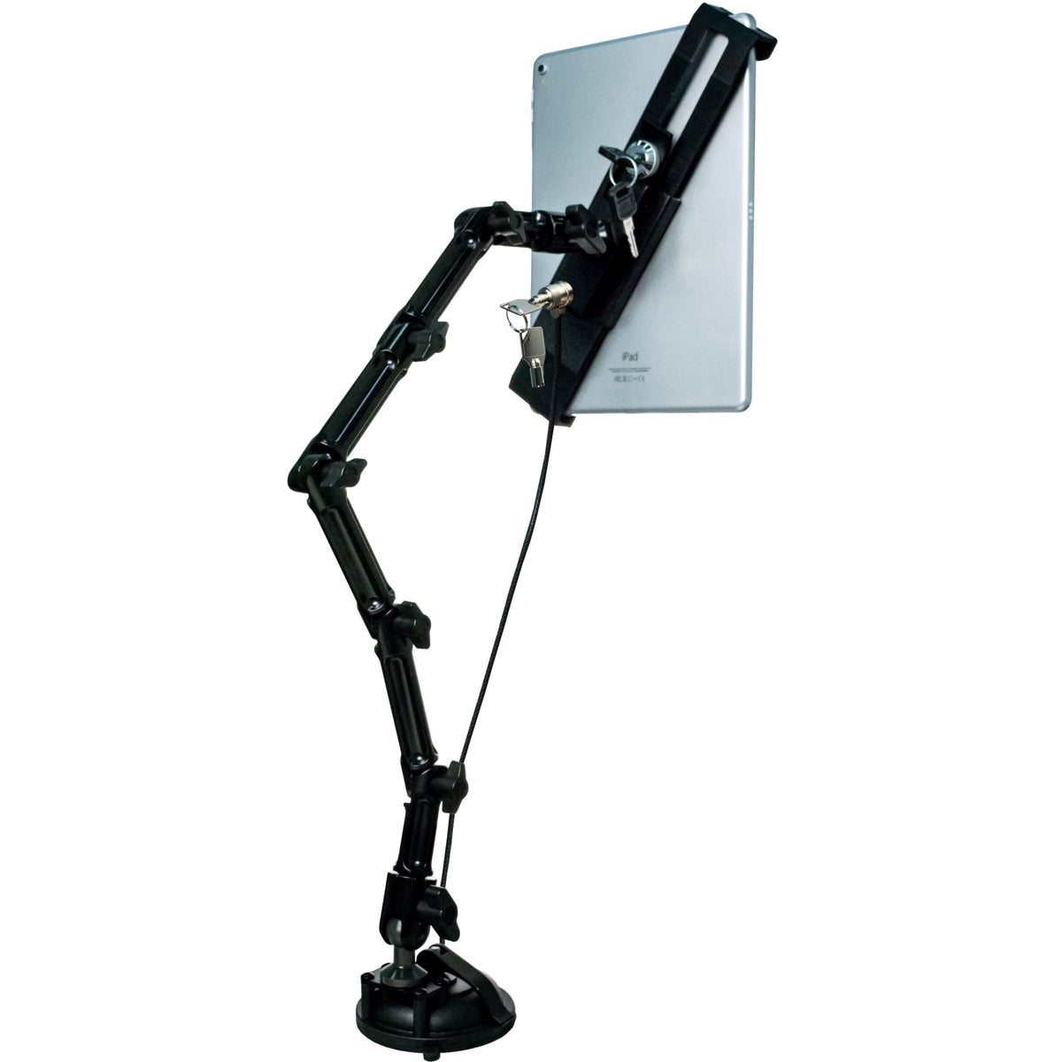 This Flexible, Ultra-Modifiable Tablet Mount Employs A Nexus Of Adjustment Points To Give You Virtually Infinite Display Options. The Arms 5 Joints And Limb Segments Can Be Flexed To Achieve Any Angle. Tension-Locking Ball Socket Joints At The Stand Base And Head Give Even Further Angle Adjustability, While The Tablet Holder Itself Rotates 360 Degrees For Portrait And Landscape Orientations. This Unique Corner-Grip Holder Protects Your Tablet From Theft With A Lock And Key Security System And Tethers To A Table, Counter, Or Other Permanent Fixture With A Steel Security Cable. The Powerful Suction Base Adheres To Any Flat Surface, Making This Mount A Perfect Fit For Offices, Classrooms, Conference Rooms, And More.