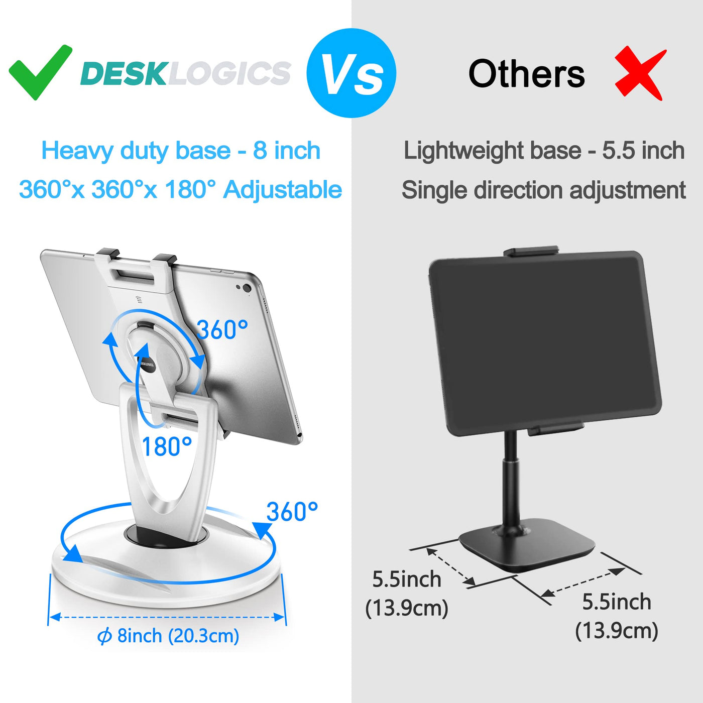 Desklogics Ipad Stand For Desk, Tablet Holder 6 Inch To 13 Inch Stable, Adjustable 360 Swivel Angle Pen Phone Ipad Stand F