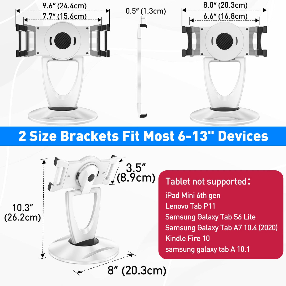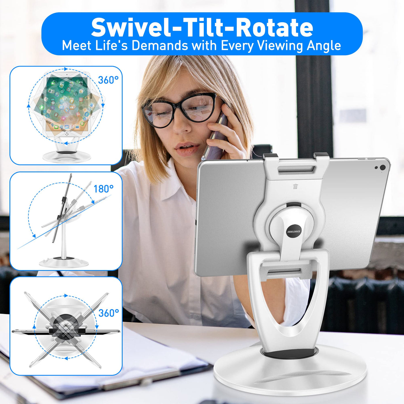 Desklogics Ipad Tablet Stand Holder For Desk - 6 Inch To 13 Inch - Stable, Sturdy, Adjustable - 360 Swivel Angle Pen Phone Ipad Stand For Store, Retail Kiosk, Reception, Home Office - White Ipad Stand Tablet Stand Holder For Desk Ipad Pro Stands Adjutable Ipad Air Ipad Mini Charging Kiosk Swivel Pos Stand Portable Foldable Rotating Phone Business Retail Display Generation Desktop Office Accessories Inch Surface Tab Para Square Base Gift Ideas