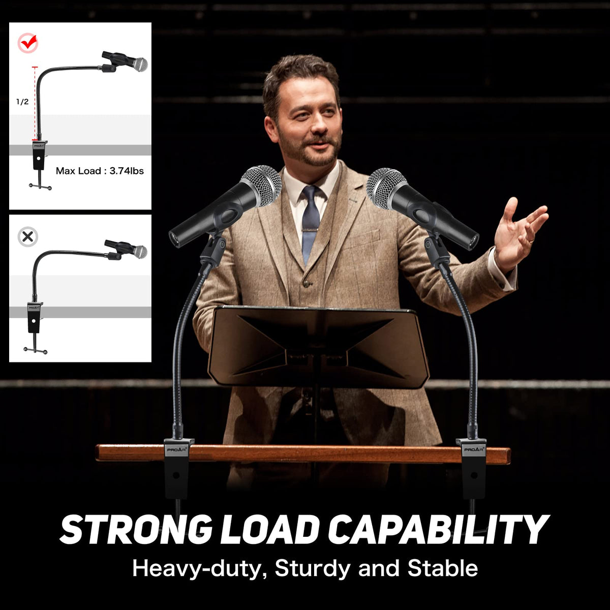 Desktop Mic Stand 13'' Flexible Gooseneck Microphone Stand Desk Universal Microphone/Phone Stand Holder With Heavy Duty Desk Cla
