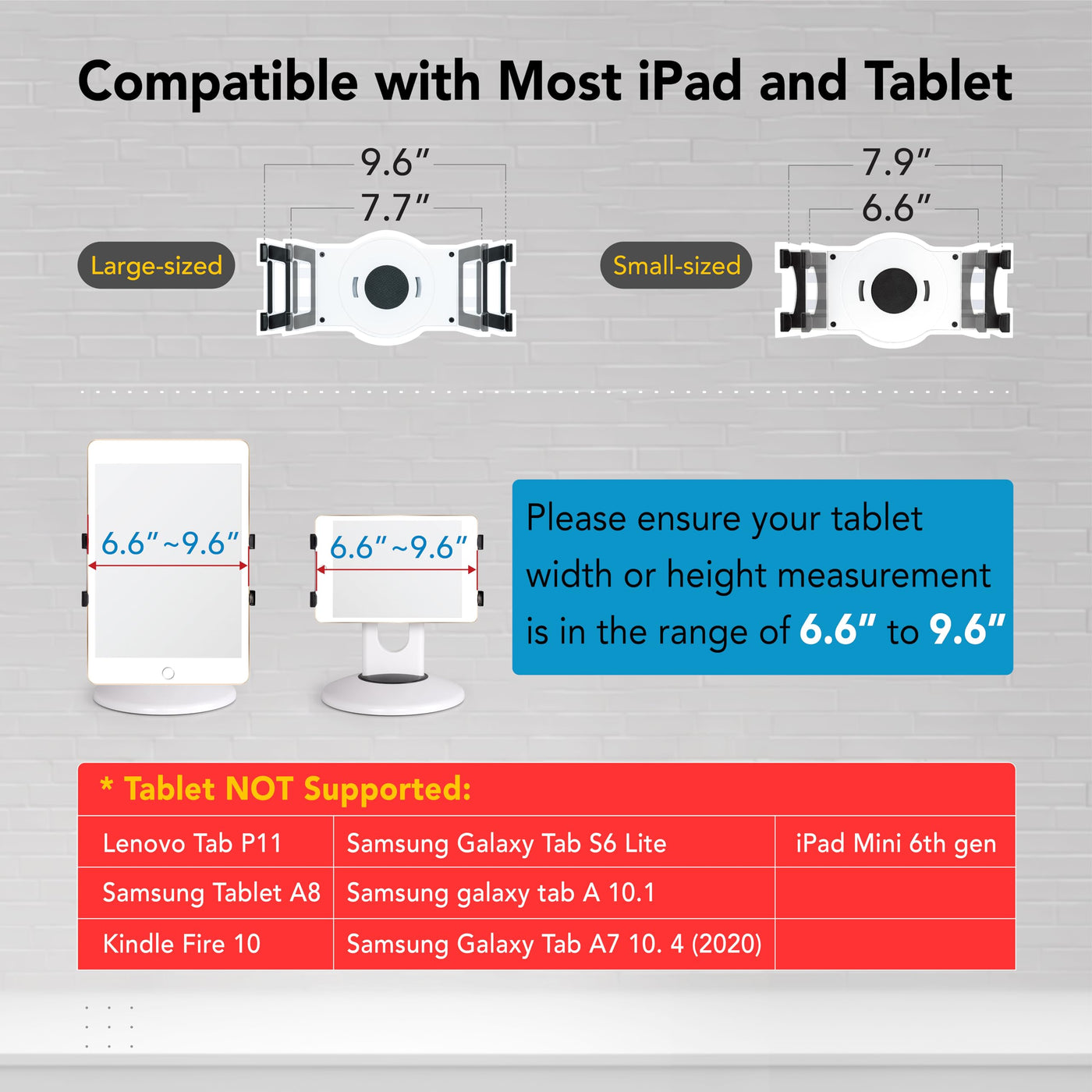 Let'S Face It, There Is No Good Way Of Holding A Tablet By Itself. Your Hand Gets In The Way Of The Touch Screen, You Always Accidentally Press Something You Didn'T Mean To, And If You Try To Balance It On Your Hand You'Re Terrified Of Dropping The Piece Of Technology You Spend Hundreds Of Dollars On. With The Eho Tablet Stand, You Can Simply Place Fit Your Tablet Onto The Stand, And You'Re Ready To Use Your Tablet Without Having To Hold It. Sit On The Couch And Watch A Movie. Place It Next To Your Computer And Facetime With A Colleague While You Both Work On A Project. Have Recipes And Instructions Within Easy View As You Prepare A Great Meal In The Kitchen. All Of This Made Easier By Not Having To Hold Your Tablet.Main Featuresthe 360 Lets You Easily Switch From Portrait View (For Viewing Documents Or Emails), To Landscape View (For Viewing Videos Or Photos).A Weighted Base Makes This Stand Very Stable, And Won'T Shake Or Topple Over While Using Your Tablet.The Stand Also Swivels 360 Allowing You To Show Your Neighbors What You Are Looking At Without Having To Pick Up Or Move The Entire Standcompatibility The Eho Tablet Stand Has A Universal Bracket That Extends From 20Cm ~ 24Cm. It Holds Most 7.9'' To 13'' Tablets. This Includes The Ipad 1~4, Mini 1~4, Air1 / Air2, Pro 12.9'', Pro 9.7'', And The 2017 Ipad.It Is Also Compatible With Most 7.9'' ~ 13'' Samsung Tablets, Fire Hd 8, And Pixel C.