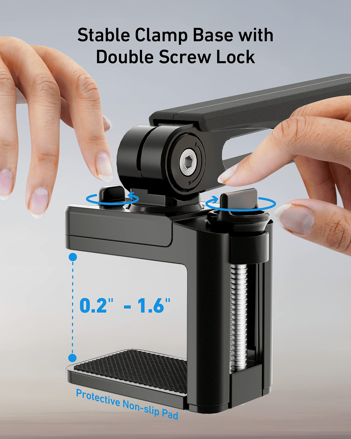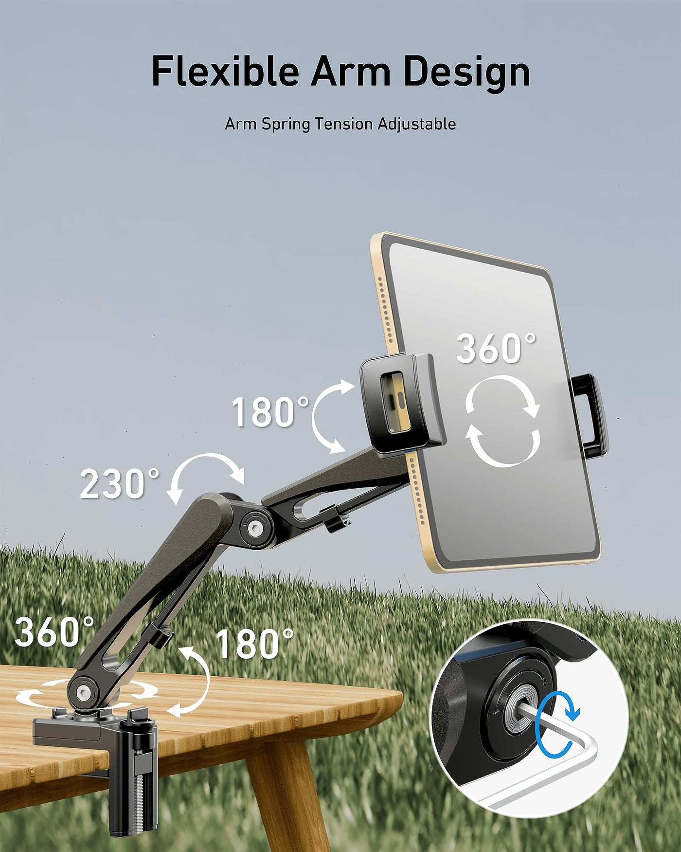 Thank You For Reviewing Ergounion Desk Organizers And Accessories - Ta13 Flexible Clamp Phone/Tablet Holder Mount, Which Is A Versatile And Convenient Accessory Designed To Enhance Your Digital Experience. Whether You'Re Working From Home, Binge-Watching Your Favorite Show, Or Reading A Book, This Mount Offers Versatile Mounting Options That Make It Easy To Use Your Smartphone, Tablet, Or E-Reader. With Its Versatile Mounting Options, You Can Attach It To Your Bed Headboard, Desk, Countertop, Or Any Surface Up To 1.6 Inches Thick. This Means That You Can Use It Wherever And Whenever You Need It, Whether You'Re At Home, In The Office, Or On The Go.And With Its Sturdy And Durable Construction, You Can Be Sure That Your Device Will Stay Securely In Place. With Its Flexible Arm, This Mount Allows You To Adjust Your Device'S Viewing Angle And Position To Your Liking. The Mount Is Also Designed With A Cable Management System, Keeping Your Wires Organized And Out Of Sight, Creating A Cleaner And More Streamlined Look. Say Goodbye To Tangled Wires And Unsightly Cables Cluttering Up Your Workspace.Finally And Most Importantly, This Mount Is Compatible With A Variety Of Devices, Including Kindle, Ipad, And Tablets. It Is Even Compatible With The Latest Devices Such As The 2021 Ipad Mini 6 And Ipad Air 5/4/3/2/1.So, This Tablet Holder For Desk Is The Ultimate Accessory For Convenient And Comfortable Device Use. Use It As A Tablet Clamp Mount, Kindle Holder, Ipad Arm Mount, Phone Mount, Ipad Stand Holder, Ipad Pro Stand, Cell Phone Stand, Or Phone Stand For Desk...Overall, Its Flexibility, Durability, And Convenience Make It A Must-Have For Anyone Who Wants To Enhance Their Digital Experience!