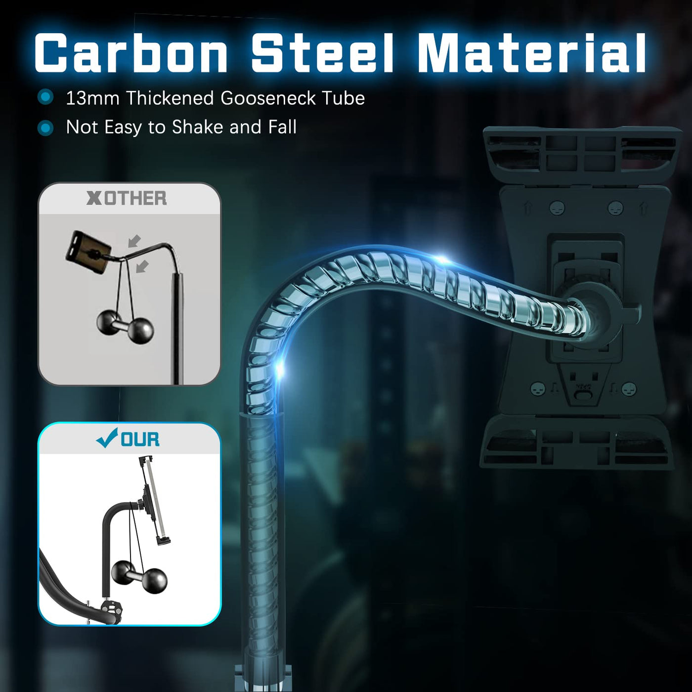 Exercise Bike Tablet Holder, Treadmill Spin Bike Gooseneck Adjustable Arm Mount, Microphone Stand Tablet Holder Stationary Handl