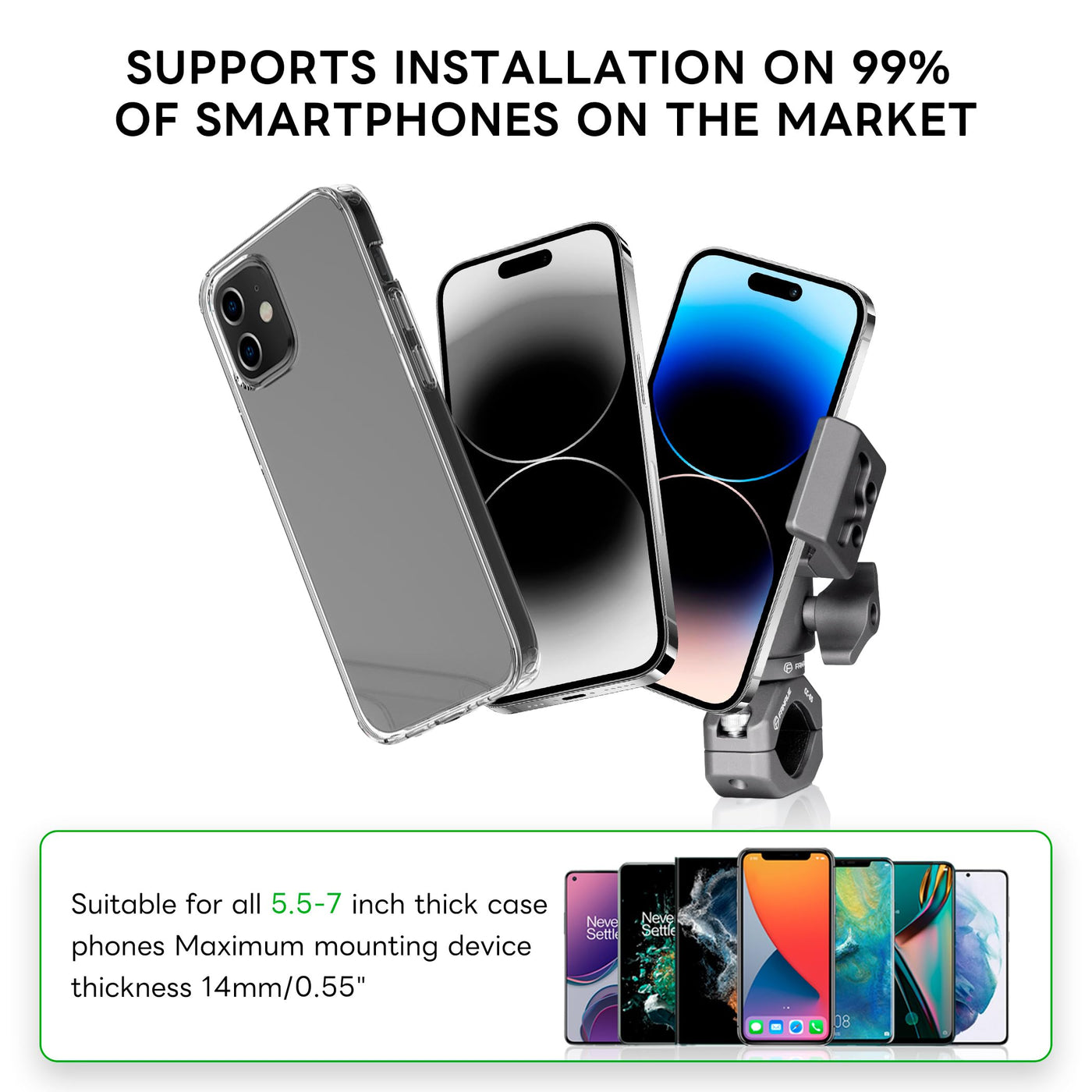 Fanaue Cpc-06T-05P Aluminum Alloy Bicycle Motorcycle Phone Holder Is Designed To Provide A Safe And Convenient Solution For Fixing Smartphones While Riding, One-Piece Clip Design Do Not Block The Screen, Ports Or Camera Usage, Bicycle Cell Phone Holder Embedded Non-Slip Rubber Pads Tightly Wrap Your Smartphone To Prevent Scratches And Absorb Shock, Making Your Use Smoother, Anti-Loosening Knob Device Provides Double Protection For Your Smartphone, Adding Extra Security, Ensuring That Your Device Can Be Firmly Fixed On The Motorcycle Holder Even When Riding At High Speed On Bumpy Roads. This Mobile Phone Holder With 1'' Ball Head Is Made Of High-Quality Aluminum Alloy, Stainless Steel And Tpu, Cnc Precision Machining, Surface Is Treated With Grade Iii Hard Anodizing, Solid Stainless Steel Ball Head Is Overmolded With High-Quality Non-Slip Rubber, Ergonomically Designed And Fits Perfectly With Double Socket Arm Without Leaving Extra Space, Making It Tightly Connected And Not Easy To Loosen, Universal Ball Joint Design Allows You To Easily Adjust The Mobile Cell Phone Mount To The Desired Viewing Angle, Whether Horizontally Or Vertically, Making It Convenient To Use Your Smartphone To Make Calls, Gps Navigation, Play Music, View Maps Etc. Motorcycle Bicycle Phone Holder Compatible With 6-8.5'' Smartphones, Such As Iphone 11 Pro Max, Samsung Galaxy S21+, Oneplus 10 Pro, Google Pixel, Huawei Etc. The Adjustable Clamp Is Suitable For Handlebars With A Diameter Range Of 22-32 Mm, Suitable For Various Devices With Handlebar Holders, Including Electric Golf Carts For Adults, Bicycles, Utvs, Atvs, Treadmills, Strollers And Scooters Etc. Bike Cell Phone Holder&Nbsp; Compatible With Ram Mounts B Size Phone Holder Accessories, Can Be Paired With All Brands Of 1 Inch Ball Head Adapters, Suitable For Quadlock Mounts, Kayak Phone Holders, Off-Road Vehicle Phone Holders, Mountain Bike Phone Mount, Scooter Phone Mount, Iphone Bike Mount Etc, Providing You With More Phone Holder Combination Solutions For Riding. Brand: Fanaue Sku: Cpc-06T-05P Product Weight: 240/10.85Oz Ball Head Size: 25Mm/B Size/1-Inch Ball Head Material: Aluminum Alloy, Stainless Steel, Tpu Installation Range: 0.85-1.14'' (22Mm-32Mm) On Handlebars Or Round Bars Compatible With: Ram Mount 1-Inch Ball Head Adapter Applicable To: 6-8.5 Inch Mobile Phones, Supporting Devices With A Maximum Thickness Of 14Mm Screw Size: Short Screw Length Is 14Mm (Supports Installation Of 22-28Mm), Long Screw Length Is 25Mm (Supports Installation Of 22-32Mm) Package Contains: Handlebar Clamp Mounting U-Bolt Base With Double Socket Arm*1, Phone Clamp With 1 Inch Ball Head*1, Short Screw*2, Long Screw*2, Screw Wrench*1.