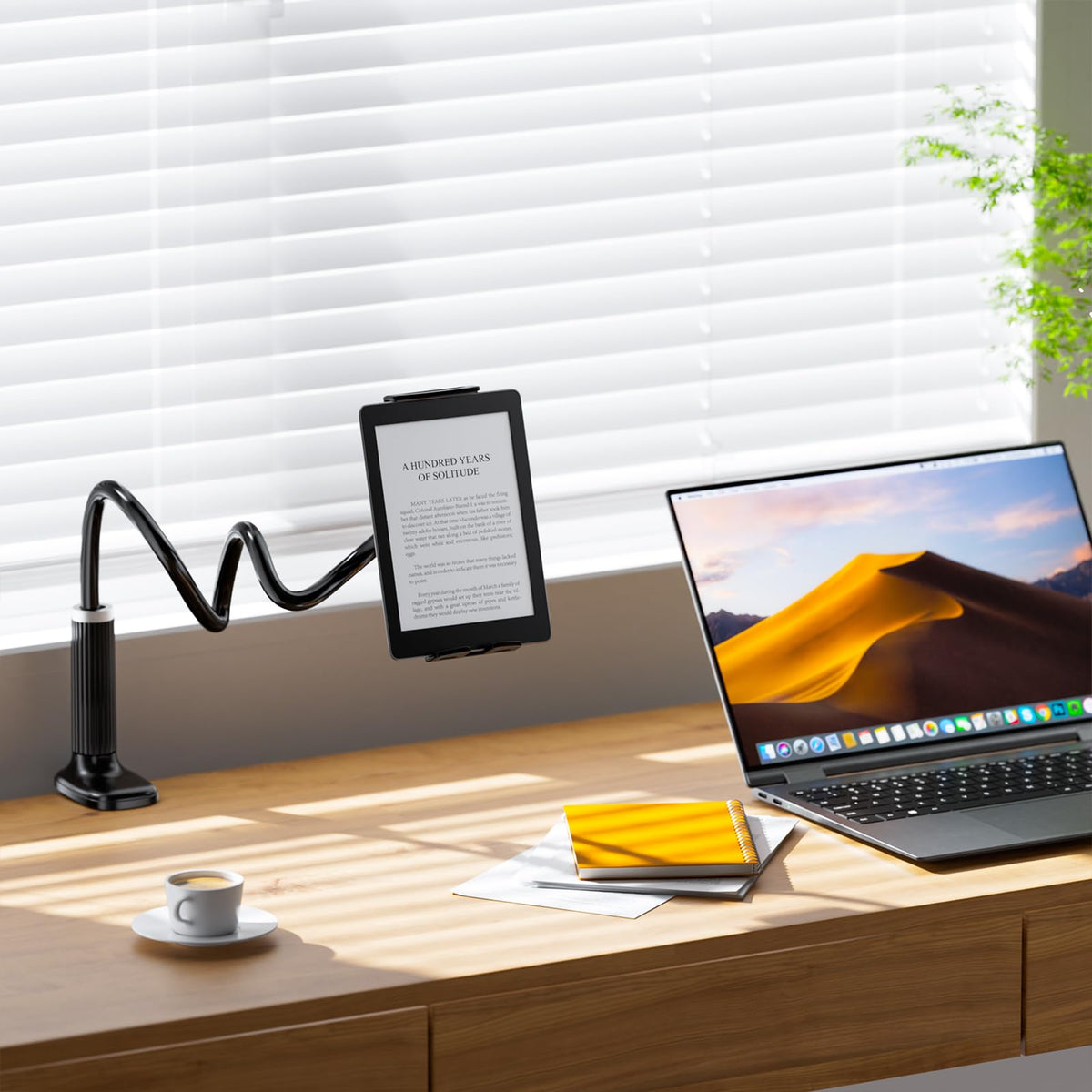 Introducing The Flycoco Gooseneck Tablet Stand Holder - Where Cutting-Edge Design Meets Unrivaled Functionality. Built For The Voracious Reader, The Relentless Gamer, And The Enthusiastic Chef, This Stand Elevates Your Tablet Experience To Celestial Heights.Robust & Resolutecrafted With A High-Strength Hexagonal Aluminum-Magnesium Alloy, This Stand Isn'T Just Durable-It'S Virtually Indestructible. The Long, 38.7-Inch Arm Is Designed To Withstand Greater Forces, Ensuring Your Device Remains Steadfast And Wobble-Free, Whether You'Re Swiping Through Recipes Or Battling In-Game Enemies.Sculpted For Stabilityforget The Flimsy Holders That Falter Under The Weight Of Your Device. Our Upgraded Stand Boasts A Sturdy, Non-Slip Silicone Base That Grips Securely Onto Any Surface. Flat Or Cylindrical, Desk Or Bed Frame, The Flycoco Stand Clings With The Tenacity Of A True Champion.Versatility At Its Corewhy Settle For A Holder That Only Offers One View? Our 360 Rotating Chuck Device Lets You Flip, Spin, And Turn Your Device To Your Hearts Content. Portrait For Reading Your Latest Kindle Download, Landscape For Catching Up On Your Favorite Netflix Saga-Adjustments Are Seamless And Smooth.Compatible With Your Worldfrom The Compact Iphone To The Expansive Ipad Pro, And Even The Versatile Nintendo Switch, This Holder Adapts To Them All. The Thoughtful Design Accommodates Devices From 4 To 13 Inches, Ensuring A Snug Fit For Everything In Your Digital Arsenal.Endless Possibilitieswhether You'Re Lounging In Bed, Whipping Up A Storm In The Kitchen, Or Sweating It Out At The Gym, The Flycoco Stand Transforms Your Device Into A Hands-Free Companion That Enhances Every Aspect Of Your Digital Life. Embrace The Ultimate Freedom To Explore, Learn, And Enjoy Without The Confines Of Handheld Limits.Choose Flycoco, Where We Dont Just Hold Your Tablet-We Elevate Your Entire Digital Experience. Upgrade To The Flycoco Gooseneck Tablet Stand Holder Now And Experience A New Era Of Hands-Free Convenience!