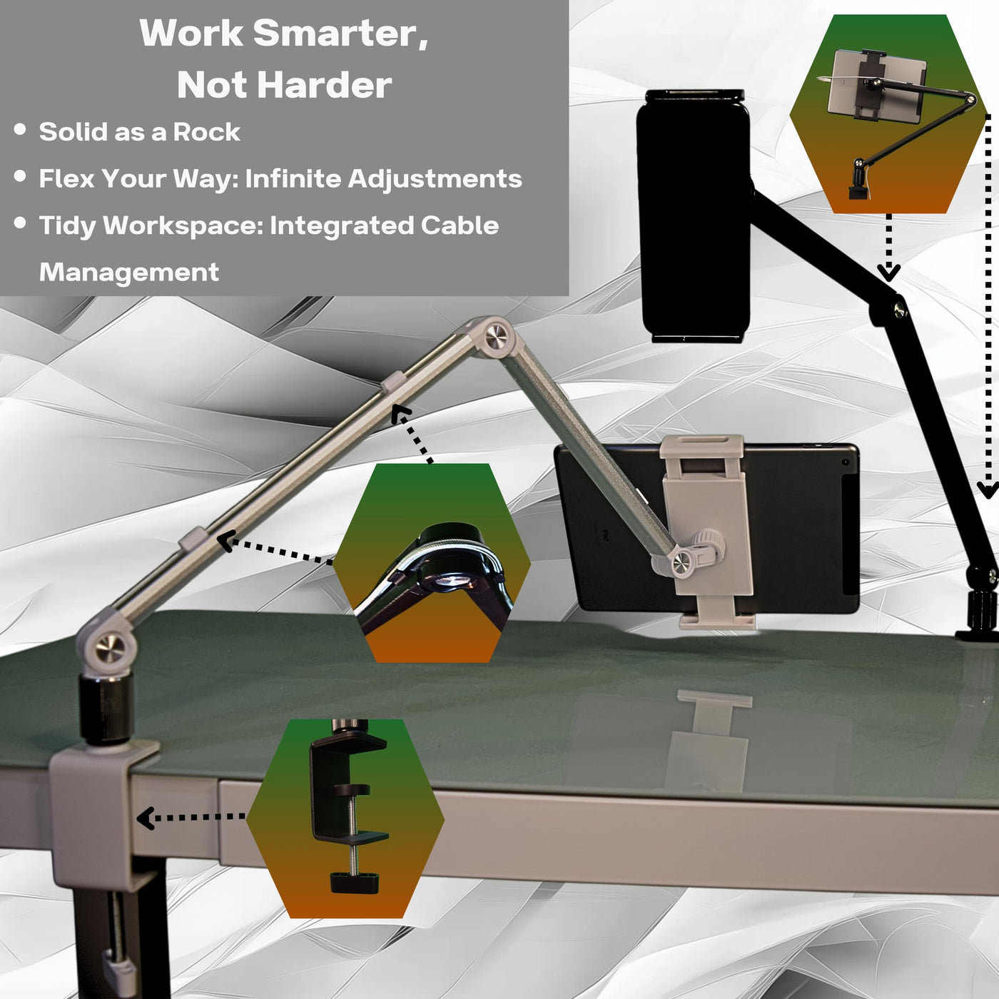 Fortihold Aluminum Phone And Tablet Stand - Adjustable 360 Rotation, Cable Management, Stable Base, White - 16'' Portable Monito