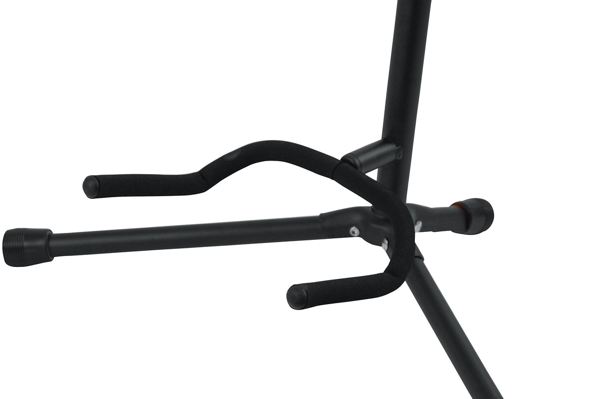 Gator Cases Frameworks Single Guitar Stand Will Keep Your Guitar Out Of The Way Of Potential Hazards That Could Result In Damage To Your Precious Instrument. The Gfw-Gtr-1000 Single Guitar Stand Features Finish Friendly Rubberized Cradle Padding, A Durable Neck Restraint That Secures The Guitar On The Stand, As Well As A Robust, Heavy-Duty Steel Construction. The Gfw-Gtr-1000 Also Features Removable Red Safety Trim On Each Of The Three Stand Feet. Buy More And Save With A Convenient 2 Pack Of Gator Frameworks Gfw-Gtr-1000 Single Guitar Stand.