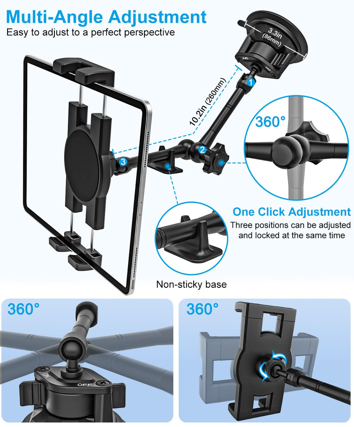 Gdzn Dashboard Mount For Truck, [Flexible Metal Arm] Heavy Duty Suction Cup Car Holder, Dash Windshield Semi Truck/Van/Suv Stand