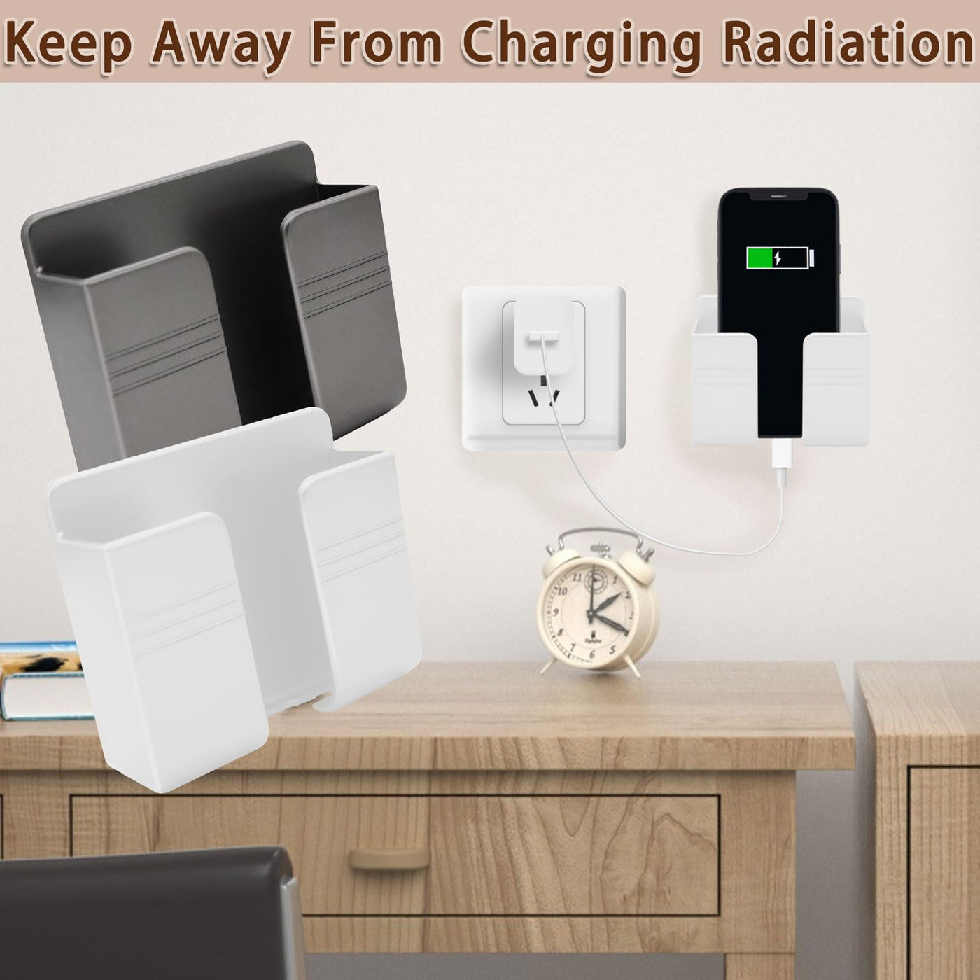 Compatible: One Size Fits All Phones, The Internal Width Of The Wall Mounted Phone Holder Is 0.95Inch, The Internal Length Is 3.72 Inches And The Maximum Compatible Phone Size Is 6.5 Inch. | Size: (L)9.9Cm/3.9Inch * (H)8.6Cm/3.4Inch * (W)3Cm/1.2Inch. | Keep Away From Radiation: When You Go To Bed At Night, Please Put Your Mobile Phone On The Wall-Mounted Phone Holder To Keep It Away From Radiation. | ???? Easy To Install: Very Easy To Install With Double-Sided Adhesive Tape, Strong Viscosity, Holds Strongly, Punch Free And Damage Free. | Material: This Wall-Mounted Mobile Phone Holder Is Made Of High Quality Materials, Which Is Very Safe, Environmentally Friendly And Durable.