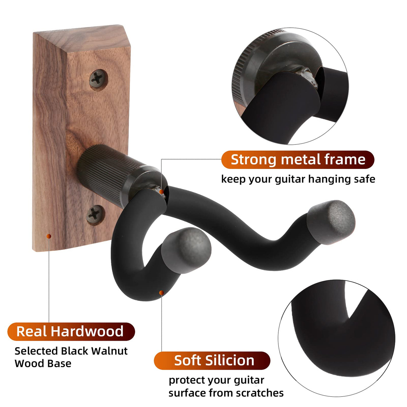 VEINTICO Guitar Wall Mount Hook - Black Walnut Wood Bracket for Acoustic, Electric Guitars, Bass, Banjo, Mandolin - Durable & Stylish