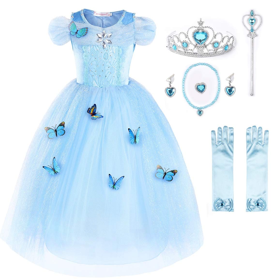 Jerrisapparel Flower Girls Dress Princess Costume Butterfly Girl (5 Years, Sky Blue With Accessories)