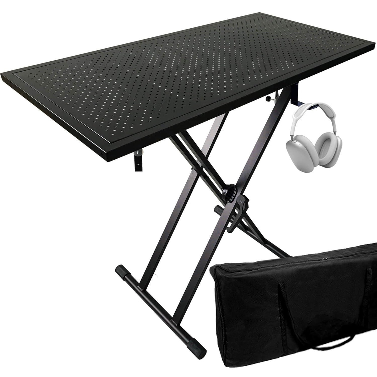 Set Up Anywhere With This Portable Dj Table Stand. Built With A Heavy-Duty Double-X Frame, It Holds Up To 170 Lbs Of Controllers, Mixers, Keyboards, And More. The 35 X 17.3 Perforated Metal Desk Keeps Your Gear Cool And Secure. Easily Adjust The Height From 21.5 To 38.6 To Fit Any Setup. Non-Slip Rubber Feet And A Secure Locking System Ensure Rock-Solid Stability. Comes Pre-Assembled And Includes A Travel Bag For Easy Storage And Transport.