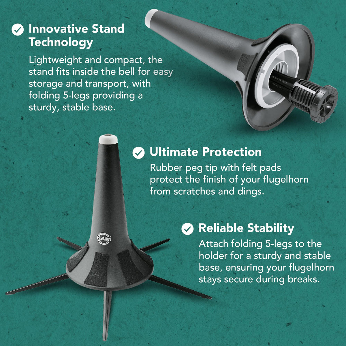 K&M Knig & Meyer 15240.000.55 Flugelhorn In-Bell 5 Leg Stand - Professional Grade For All Musicians - Lightweight & Compact - Stable Secure Base - German Made - Black