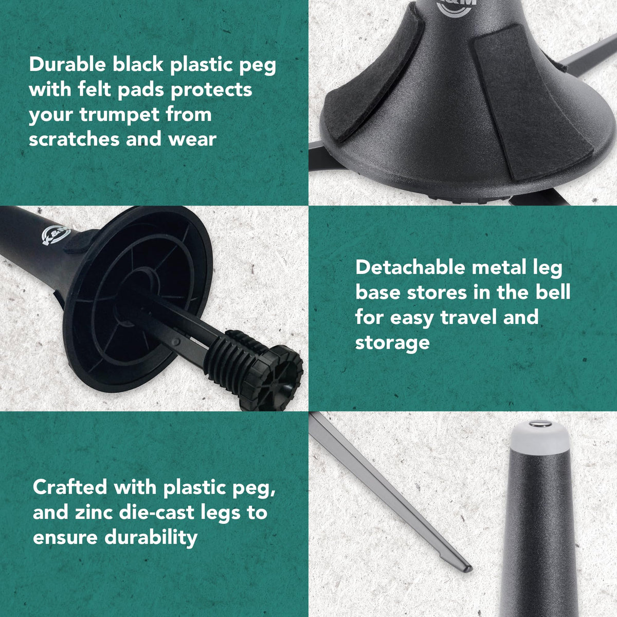K&M Konig & Meyer Trumpet Stand Inbell Three Leg Compact Trumpet Stand With Padded Pegs And A Foldable Design Black 0.24 K