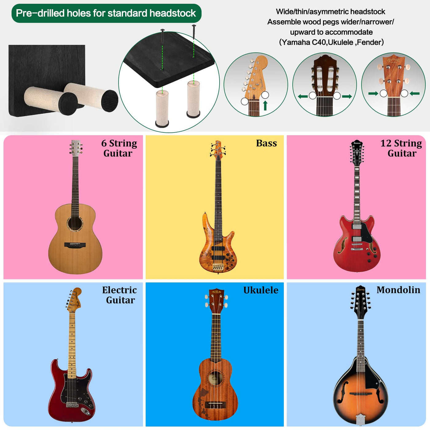 Keebofly Guitar Wall Hanger,2 Pack Guitar Wall Mount Holder Guitar Hanger Shelf With Pick Holder Wood Guitar Rack For Acoustic O
