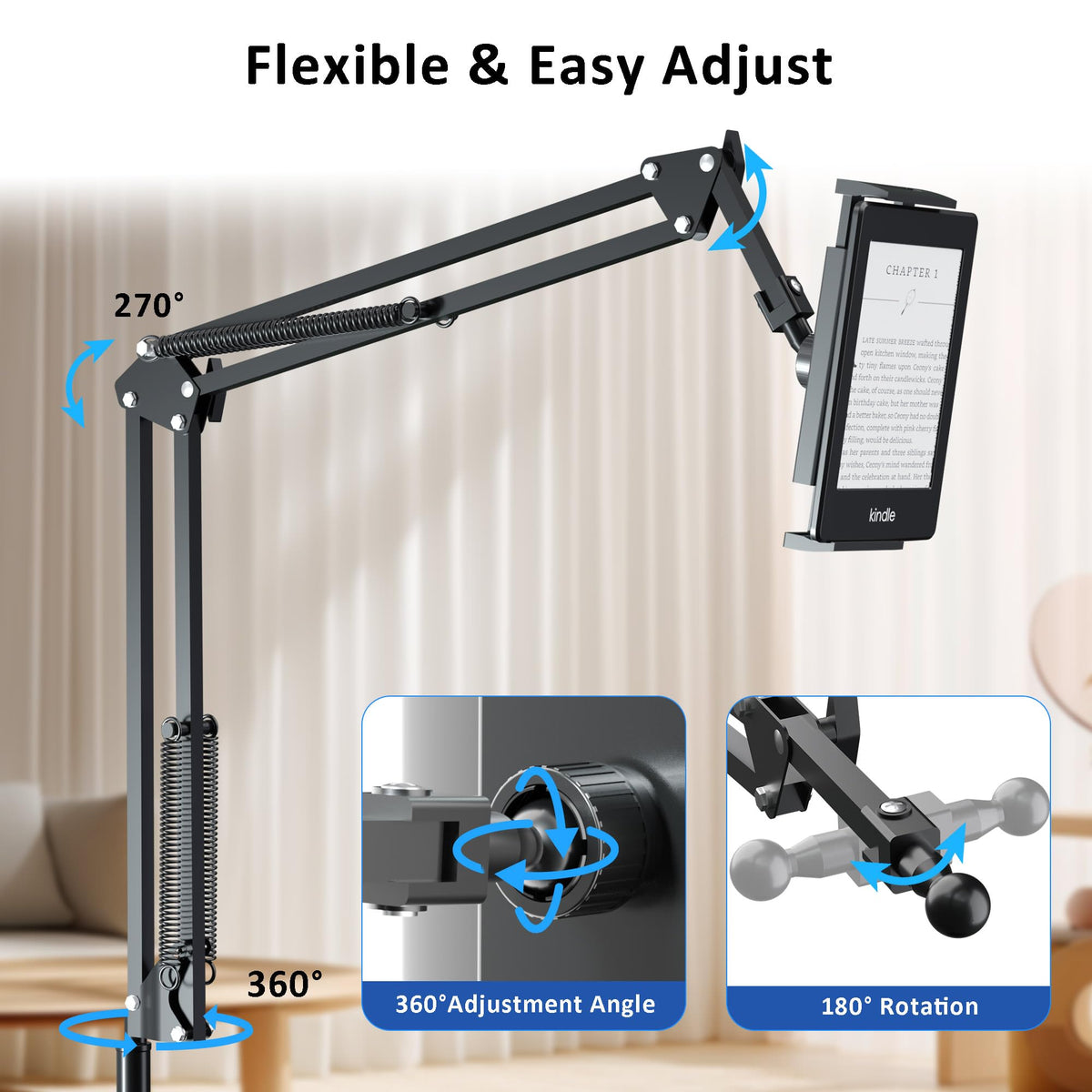 Kefotic Floor Stand For Kindle Reading In Bed With Remote Page Turner, Hands Free Tablet Arm Holder For Kindle Accessory, Compat