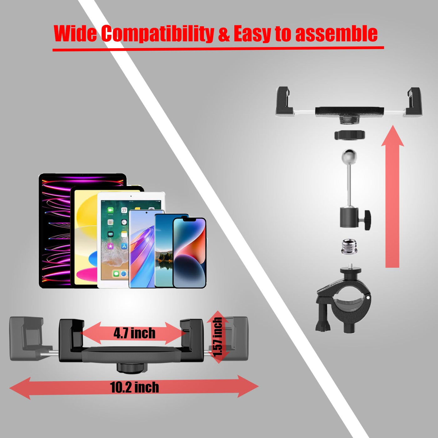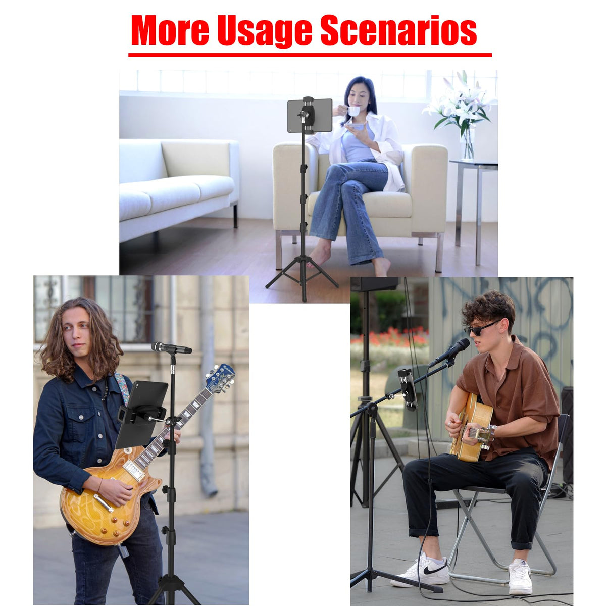 Kereal Tablet Holder For Mic Stand With 360 Ball Head And 3/8 To 1/4 Adapter, Microphone Stand Music Stand Tablet Phone Holder F