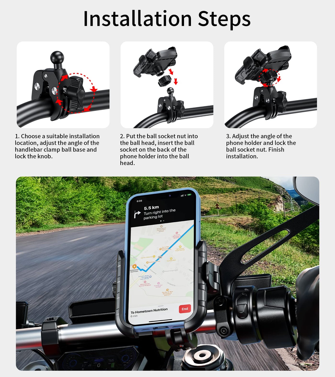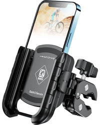 Kewig Motorcycle Phone Mount, Adjustable Handlebar Clip, 360 Rotation, Camera Friendly, Wide Compatible, Secure Phone Holder, Un