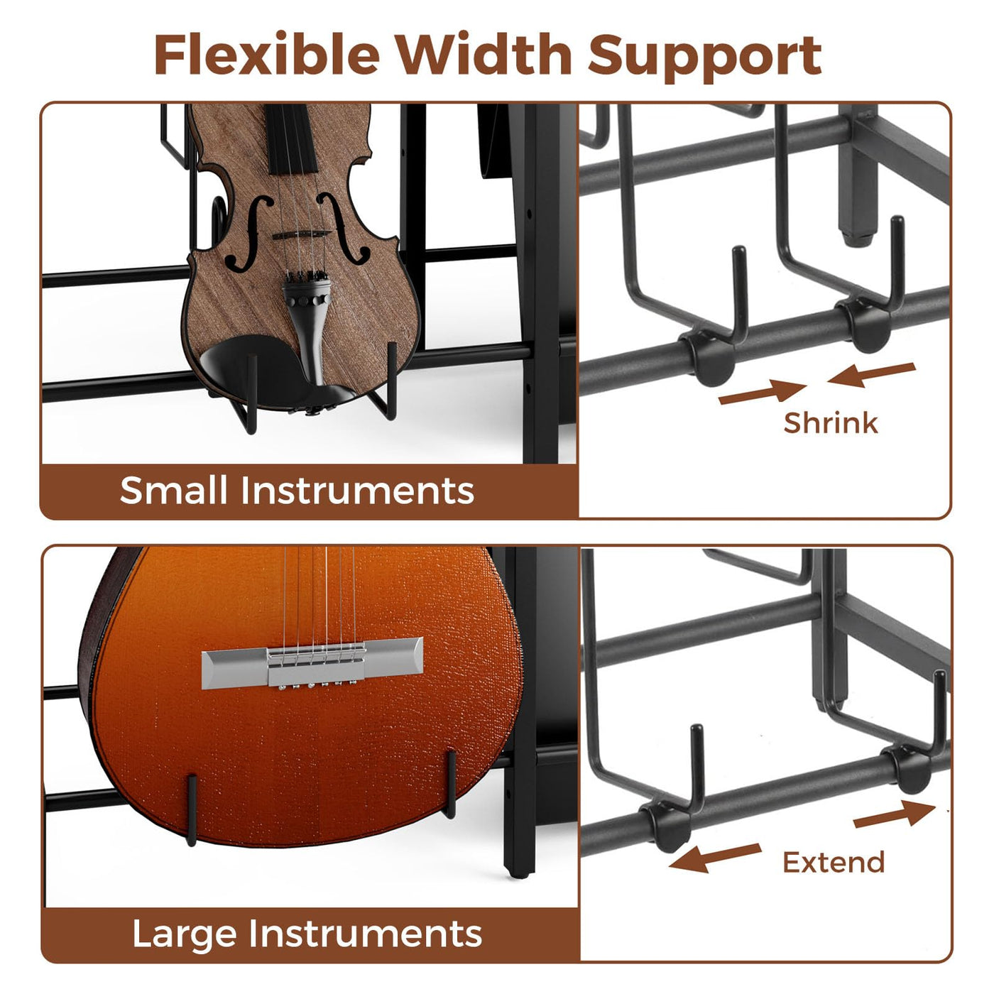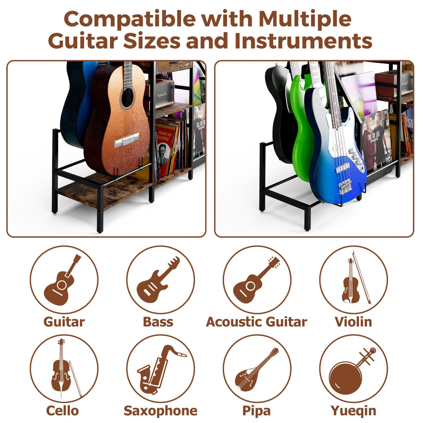Kikihouse 3 Tier Guitar Stand For Multiple Guitars, Guitar Rack With Amp Shelf And Vinyl Record Storage, Multi Guitar Stand For