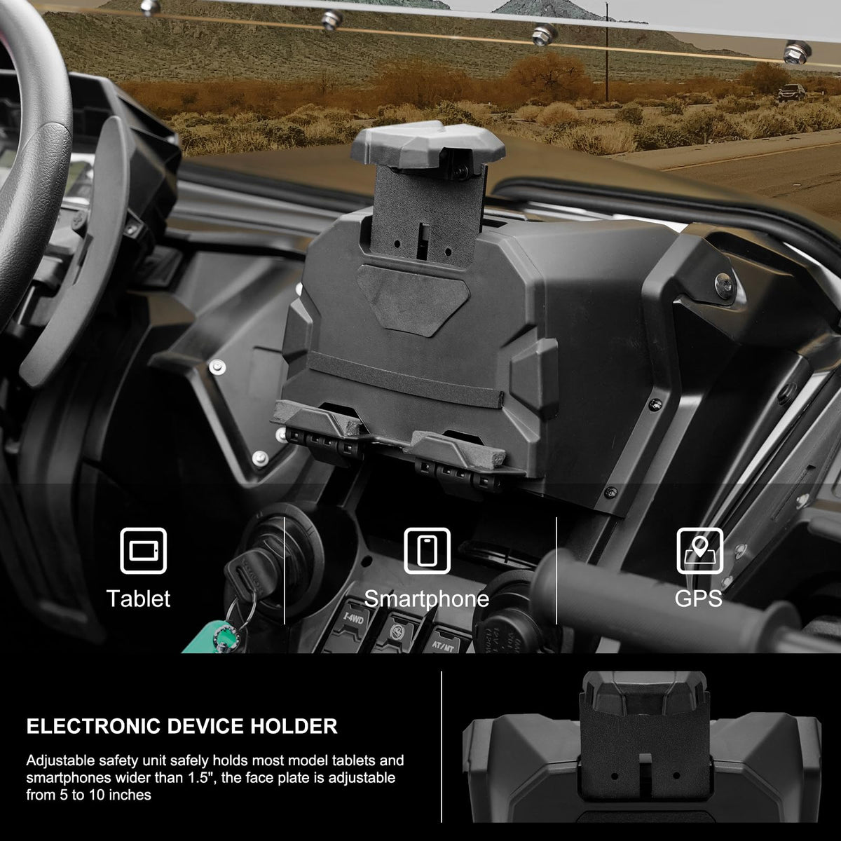 Fitment: 2019-2024 Honda Talon 1000R 1000X 1000X4. Package Included: 1 * Electronic Device Holder With Mounting Hardwares.