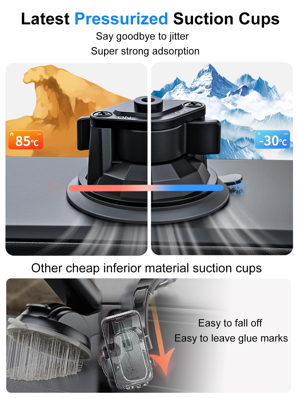 Kolasels Heavy Duty Dual Tablet Holder For Car/Truck [Metal Arm] Dashboard Windshield Double Mount For Vehicle Dash Suction Stan