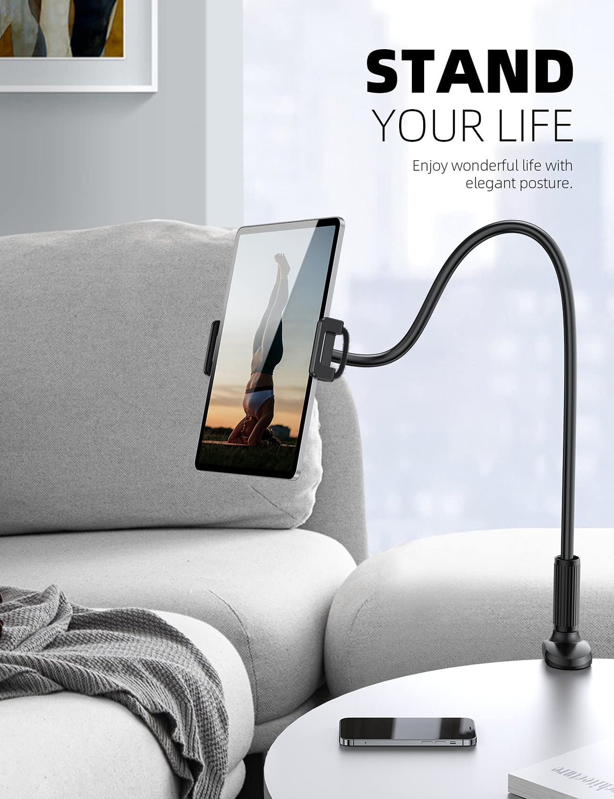 Lamicall Gooseneck Tablet Mount Holder for Bed Flexible Tablet Arm Clamp for Bed Compatible with Pad Mini 7.9, Air 9.7, Pro 10.5, Kindle, Switch, Galaxy Tabs, More 4.7 11' Device Black