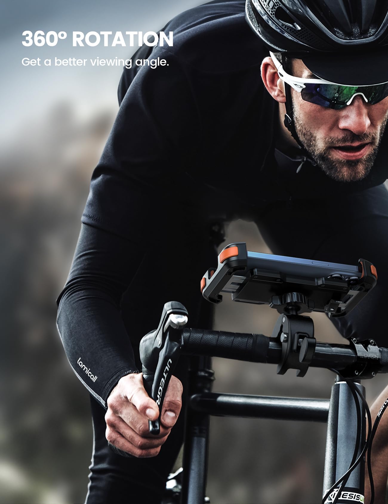 Q: How does the Lamicall Motorcycle Phone Mount ensure stability during rides?A: The Lamicall Motorcycle Phone Mount features an upgraded safety lock and a new handlebar clamp design that secures your phone firmly, ensuring it remains stable even on bumpy roads or during high-speed cycling.