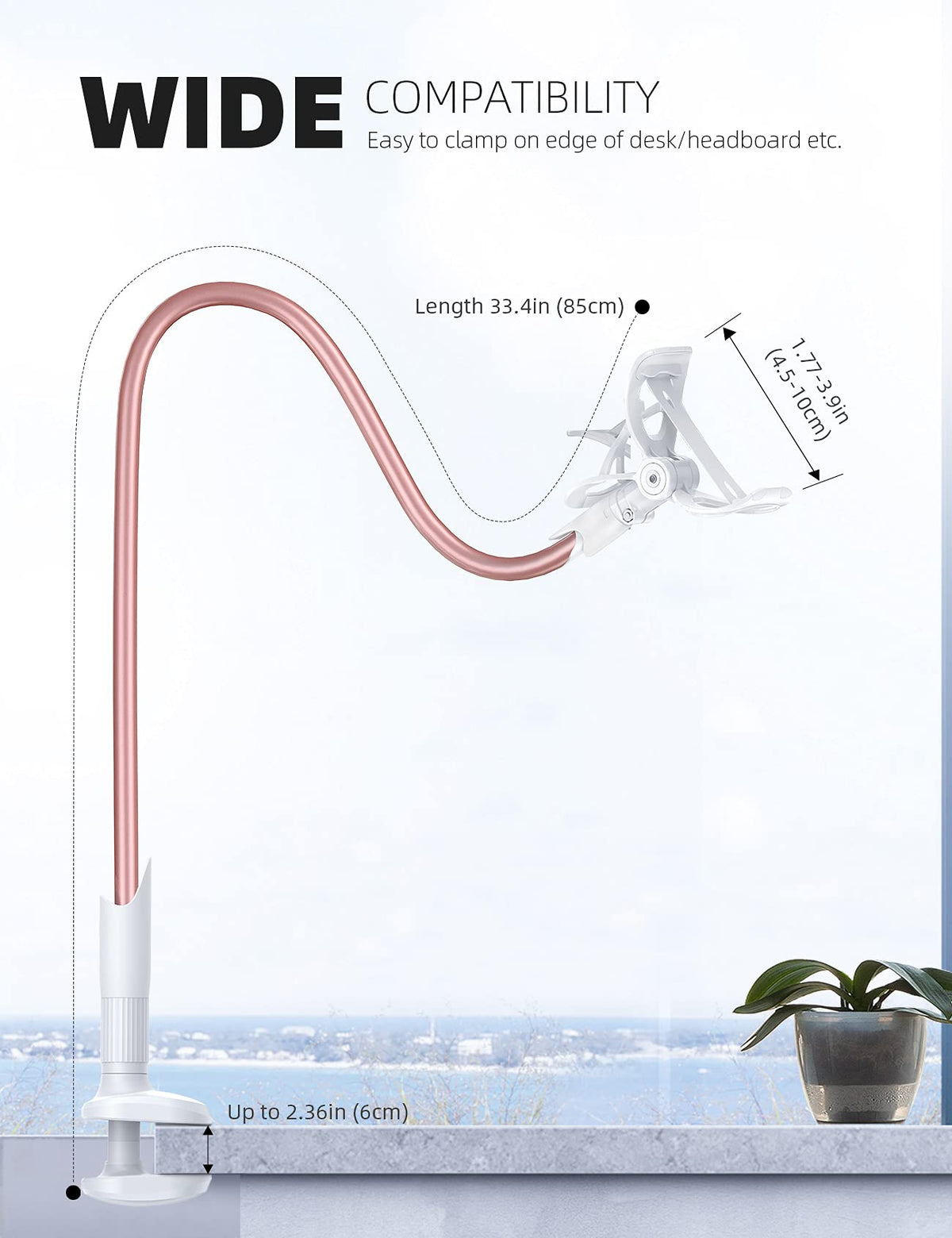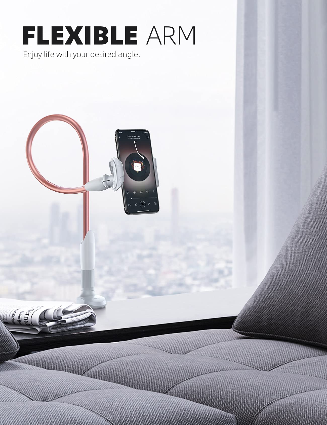 Lamicall Gooseneck Bed Phone Holder Mount - Flexible Long Arm Clip Clamp For Desk, Bedside Bendy Lazy Bracket Stand For Cell Iphone 15, Iphone 15 Plus, Iphone 15 Pro, Iphone 15 Pro Max, Iphone 14, Iphone 14 Plus, Iphone 14 Pro, Iphone 14 Pro Max, Iphone 12 13 Pro Max Mini 11 Pro Xs Max Xr X 8 7 6 Plus Se Galaxy S24, S24+, S23, S23+, S22, S22 Ultra, S21, S20, S10E, S10+, S10, S9+, S9, S8+, S8, S7 Note- Ls05A Perfect Christmas Xmas Gift (Regalo De Navidad) Or Thanksgiving Present!?Upgraded Version?Based On The Pain Points Of Similar Products ''Very Shaky. Sag Slowly After A Period And Can'T Keep A Position For Your Phone Anymore'', The Arm Of Our Gooseneck Bed Holder Adopts Better Materials And Design. It Has Improvements In Both Stability And Durability. Note: The Arm Is Not The Super Flexible Type, Which Aims To Add Stability.?Multipurpose Holder?The Gooseneck Phone Holder Is Designed To Watch Netflix Hands-Free While Laying In Bed Or Sofa, Use Facetime With Families On The Desk, Read Recipes In The Kitchen. And It Also Works As A Tripod If You Want To Take Time-Lapse Videos Or Take A Photo With A Friend.?Easy To Install?Featuring An Adjustable Clamp Base Varying From 0 To 2.36 Inches (6Cm), The Cell Phone Clip Holder Can Be Securely Mounted On The Bed Frame, Bedside, Headboard, Nightstand, Desk, End Table And Kitchen Counter Etc. Designed With A Non-Slip Silicone Base, The Holder Will Not Scratch The Surface Of Your Furniture.?Stable And Durable?As For The 33.4 Inches (85Cm) Long Arm, High- Quality Aluminum-Magnesium Alloy Solid Core Makes The Lazy Arm Sturdy Enough To Hold His Phone Firmly, Yet Flexible To Bend In Any Direction To Accommodate Your View. It Will Be A Lifesaver For Protecting You From Neck Pain.
