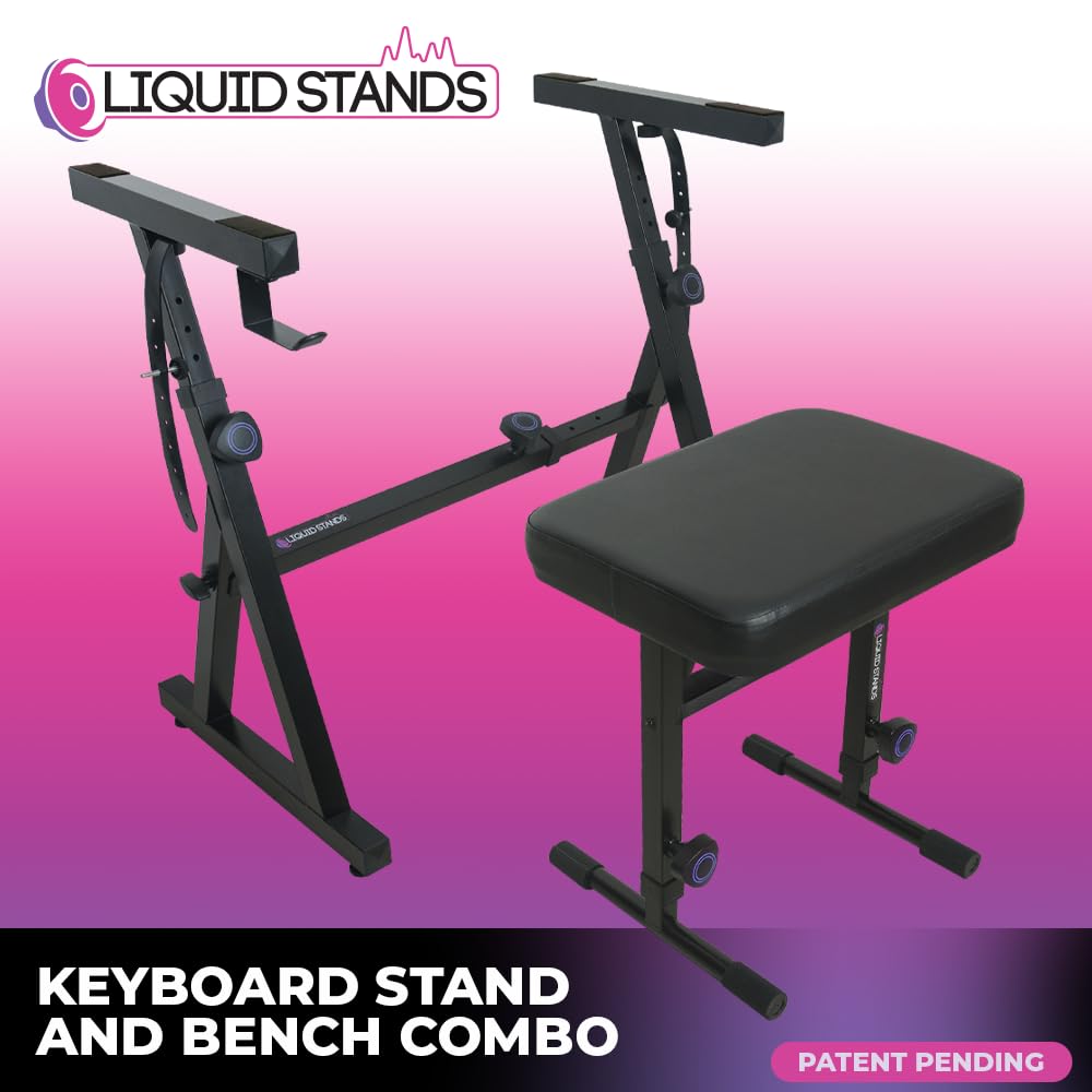 Liquid Stands Heavy Duty Z-Style Music Keyboard Stand Has Been Designed To Support Some Of The Smallest To Some Of The Biggest And Heaviest Keyboards On The Market. This Fully Adjustable Keyboard Stand Was Designed To Accommodate Both The Height Of The Musician And The Width Of The Piano Keyboard. Features Adjustable Height: Between 22.5 And 33.5 (In 1.5 Increments) Adjustable Width: Between 22.5 And 33.5 (In 2 Increments) Weight Limit: 250 Pounds Reinforced Z-Style Design Adds Extra Support For Heavier Keyboards Spring Loaded Locks Make Adjusting The Height And Width Effortless Easy Assembly And Lightweight Design Makes This Stand Very Portable No Slip, Anti-Skid Pads Keep Your Piano Firmly In Place And Prevent Surface Scratches The Versatile Height Settings Allow Users To Play Seated Or Standing The Open Stance Of The Z-Style Supports Accommodate A Range Of Foot Pedals And Piano Benches Each Piano Keyboard Stand Comes With A Full Three-Year Warranty. Folding N Shape Keyboard Bench Liquid Stands Adjustable Keyboard Stand Bench Seat Is Perfect For New And Seasoned Musicians. This Bench Was Designed To Easily Adjust To The Height Of The User And Allow Them To Find Their Perfect Seat While Playing. Each Stand Measures Xyz And Adjusts In 1 Increments. This Stand Is Perfect For Those Playing The Piano, Keyboard Piano, Djs, Guitarists, Or Any Other Type Of Musician While Finds Themselves Playing While Seated. These Benches Are Perfect For Liquid Stands Ms1078 And Ms1080 Keyboard Stands. This Bench Is Lightweight At Xyz Pounds, So You Can Easily Carry It Between Gigs. The Stand Is Also Easy To Assemble Or Break Down, So It Is Easy To Store And Travel With.