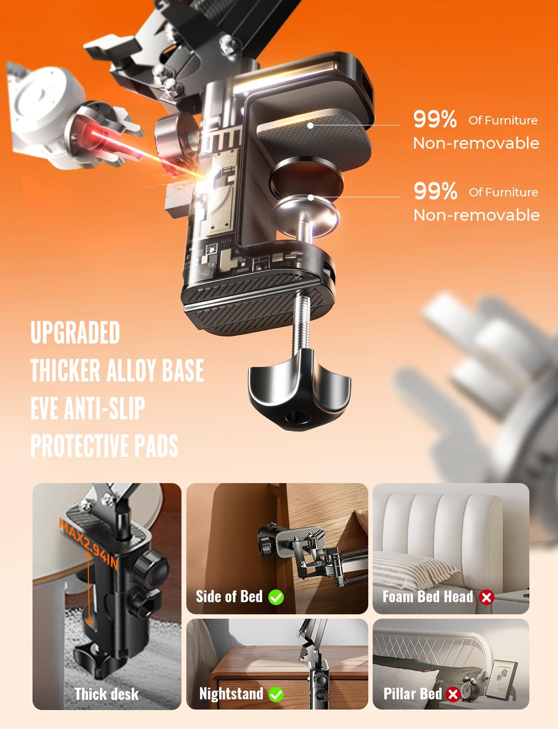 It Features A Flexible Gooseneck That Allows You To Position Your Phone At Just The Right Angle. The Base Securely Grips Desks, Nightstands, And Other Surfaces Without Slipping Or Scratching. An Anti-Slip Silicone Pad Protects Your Device From Scratches And Keeps It In Place Vertically And Horizontally. Compatible With Phones Up To 3.5'' Wide Like The Iphone 15 Pro Max, This Gooseneck Phone Holder Keeps Your Hands Free To Focus On Your Call Or Task. Its Compact Design Tucks Neatly Away When Not In Use, Keeping Everything Tidy. It Works With Iphone 12 13 14 15 16 Pro Max Plus Mini And For Magsafe Cases.Lisen Gooseneck Phone Holder For Bed Magsafe Phone Stand For Iphone 16 15 Stand Holder For Desk Magnetic Phone Stand Adjustable For Magsafe Iphone Accessories Overhead Phone Mount Bed Accessories