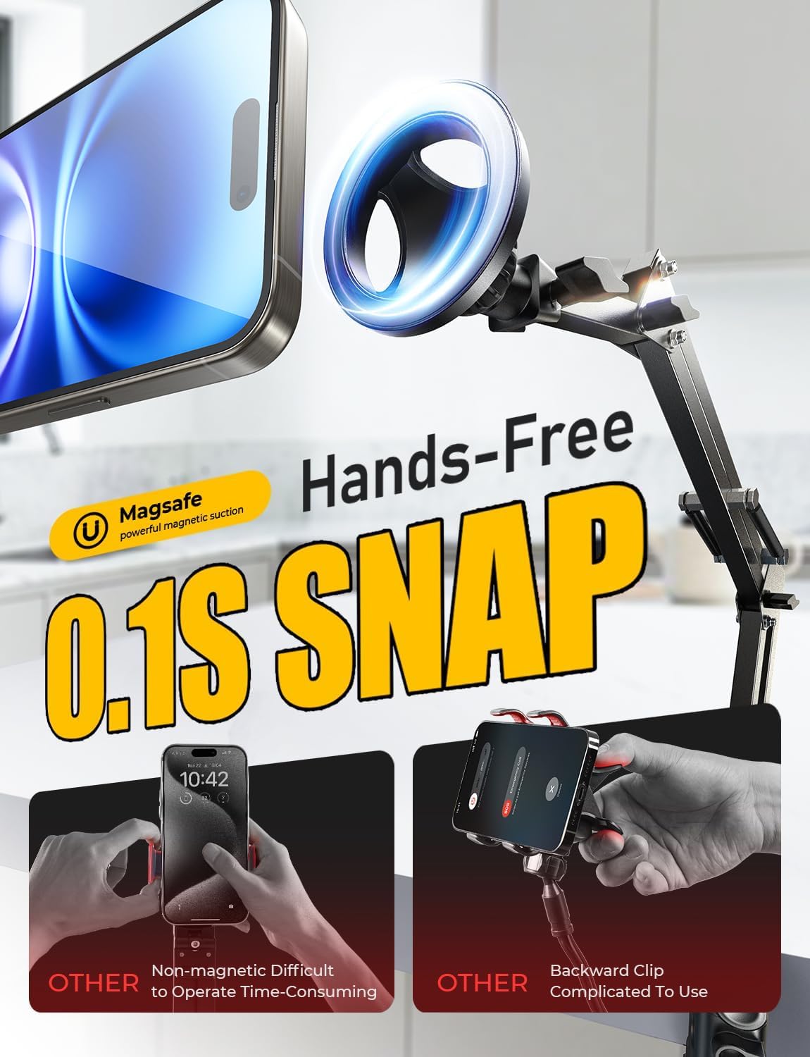 Lisen Gooseneck Phone Holder For Bed - Magsafe Stand For Iphone 16 15, Desk, Magnetic Adjustable Mount - Overhead Accessories Fo