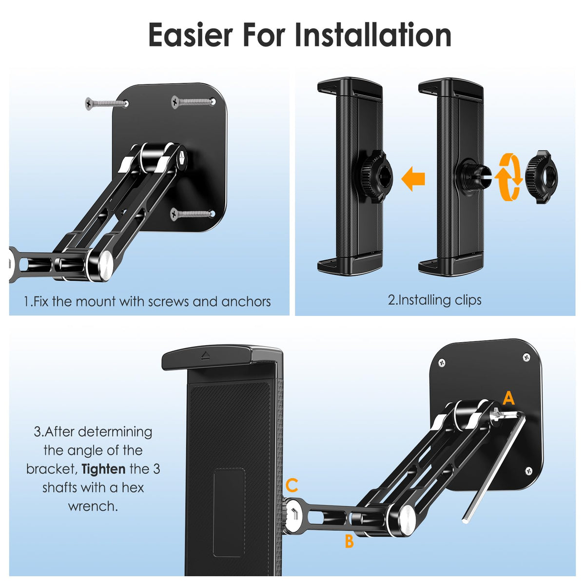 Lucrave Ipad Wall Mount, Aluminium Long Arm Tablet Wall Mount Holder, Phone Holder Arm Bracket, Compatible With 4.7''-12.9'' Devices Including Ipad Pro, Mini, Air - Ideal For Home, Office Use Ipad Wall Mount, Tablet Wall Mount Holder - 360 Rotating Bracket, 180 Horizontal/Vertical Tilt Arm, Compatible With 4.7''-12.9'' Devices Including Ipad Pro, Mini, Air - Ideal For Home, Office Tablet Wall Mount, 360 Rotation Tablet Holder Stand, Sturdy Metal Base, Kitchen Wall Mount Compatible With Ipad/Iphone/All 4.7-12.9 Inch Tablet And Smartphones Stable &Amp: Wide Compatibility: The Tablet Wall Mount Arm Is Made From Heavy-Duty Aluminum Alloy, And Can Sturdy Hold Your Tablet Or Ipad. Mount Anywhere: The Ipad Wall Mount Features A 4-Hole Metal Drill Base, Allowing Quick And Easy Mounting. Mounts With Screws (Screws Included), Can Be Mounted On All Vertical Surfaces, Walls, Tables, Kitchens, Bedrooms, Gyms, Living Rooms, Meeting Rooms, Hospitals, Warehouses, Factories, Restaurants, Etc. 360 Rotation: The Tablet Wall Mount Base Is Made Of Aluminum Alloy And Features A 360 Rotation Ball Head That Lets You Adjust Your Phone Or Ipad Screen To The Best Viewing Angle. Universalcompatible With 4.7-12.9-Inch Screen Devices, Including Ipad Pro 12.9'', Ipad Pro 11'', Ipad Air 4Th 3Rd Generation, Ipad Mini, Ipad 8, 7, 6, Galaxy Note Pro 12.2, Galaxy Tab 4, Galaxy Tab Pro 12.2, Iphone, Galaxy S20, Switch, E-Readers.