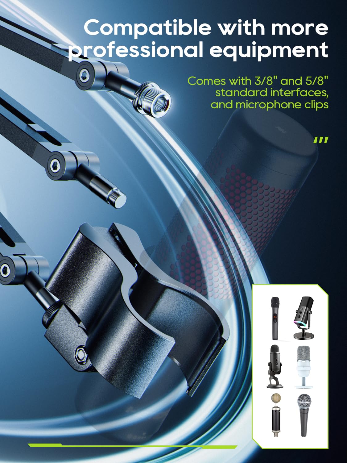 M05 Boom Arm, 360 Rotatable Microphone Stand With Desk Mount, Foldable Desk Mic Arm With 3/8'' To 5/8'' Screw Adapter, Microphon