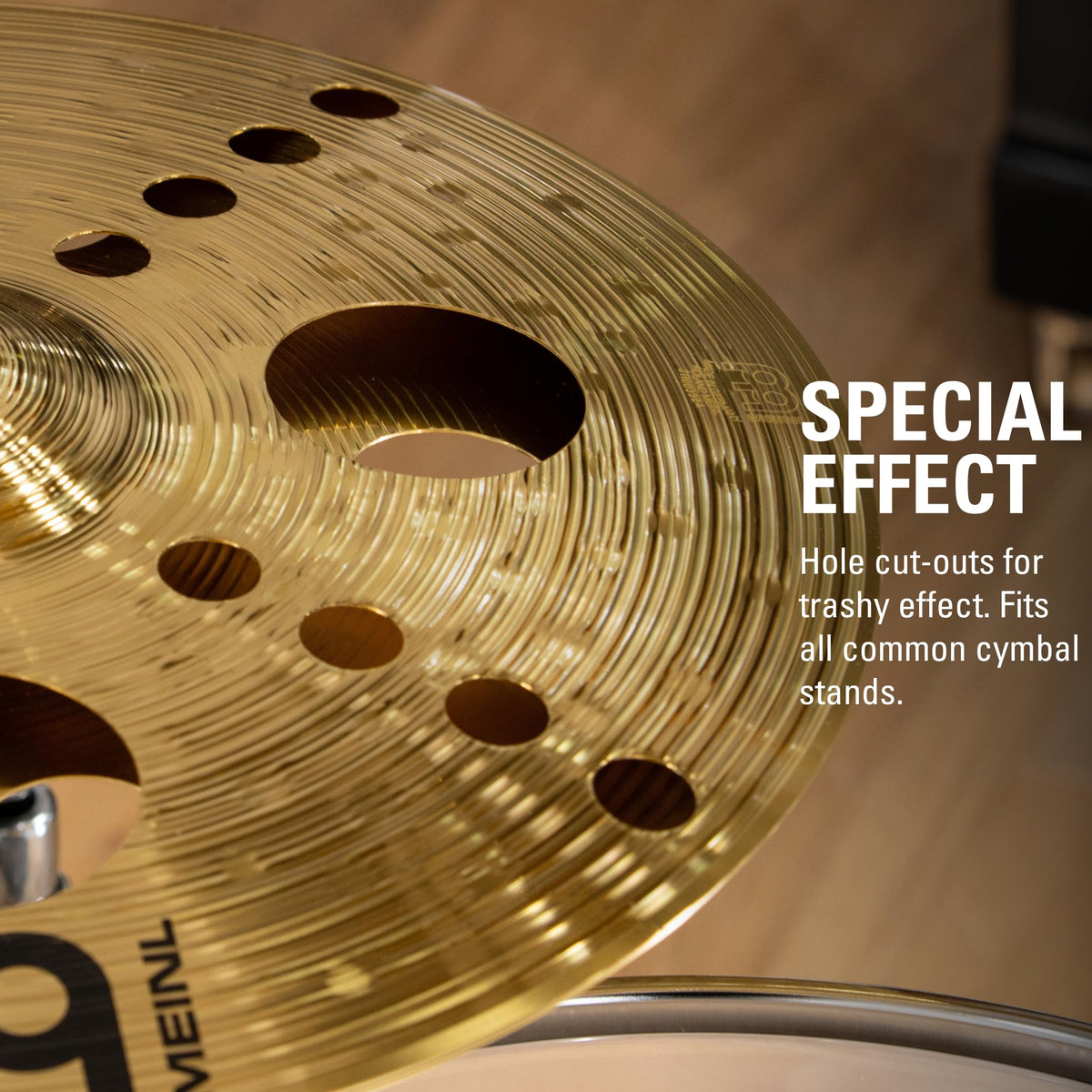 These Brass Alloy Models Sound And Look Great, And Let You Get Into Playing Mein At Very Realistic Prices. The Hcs Series From Mein Is Designed To Offer All Of The Cymbal Types And Sizes Normally Found In Professional Lines To Beginners In Order To Deliver The Same Sound Options A Professional Drummer May Look For. Equipped With Holes That Boost Trashiness And Bite, This Unique Trash Stack Delivers A Fast And Aggressive Sound With A Short Sustain.